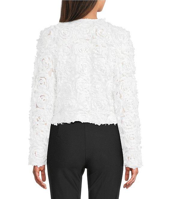 KARL LAGERFELD PARIS Floral Novelty Round Neck Long Sleeve Button Front Jacket