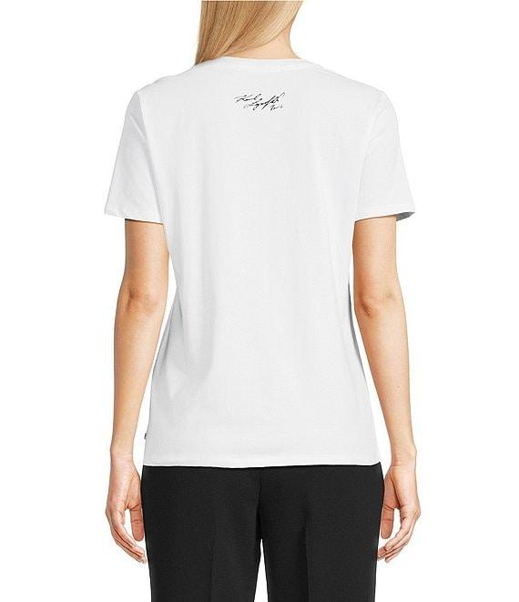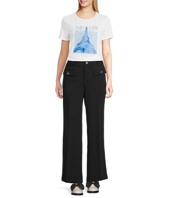 KARL LAGERFELD PARIS Knit Eiffel Tower Round Neck Short Sleeve Tee