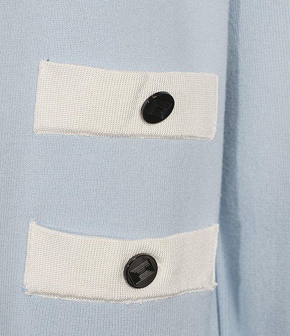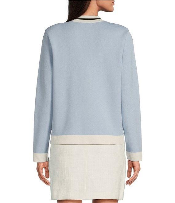 KARL LAGERFELD PARIS Knit Open Front Long Sleeve Color Block Cardigan