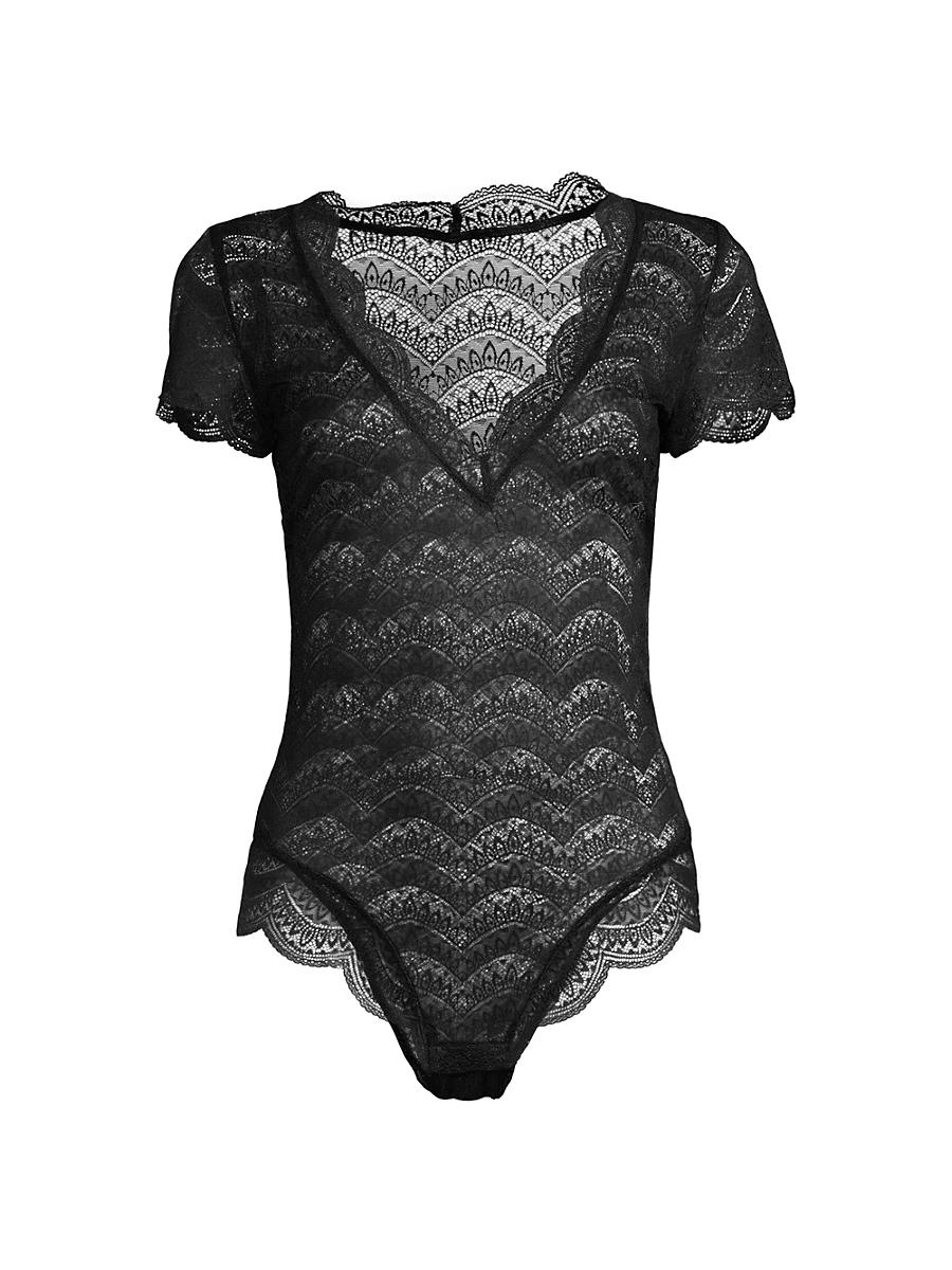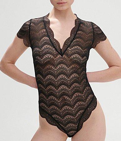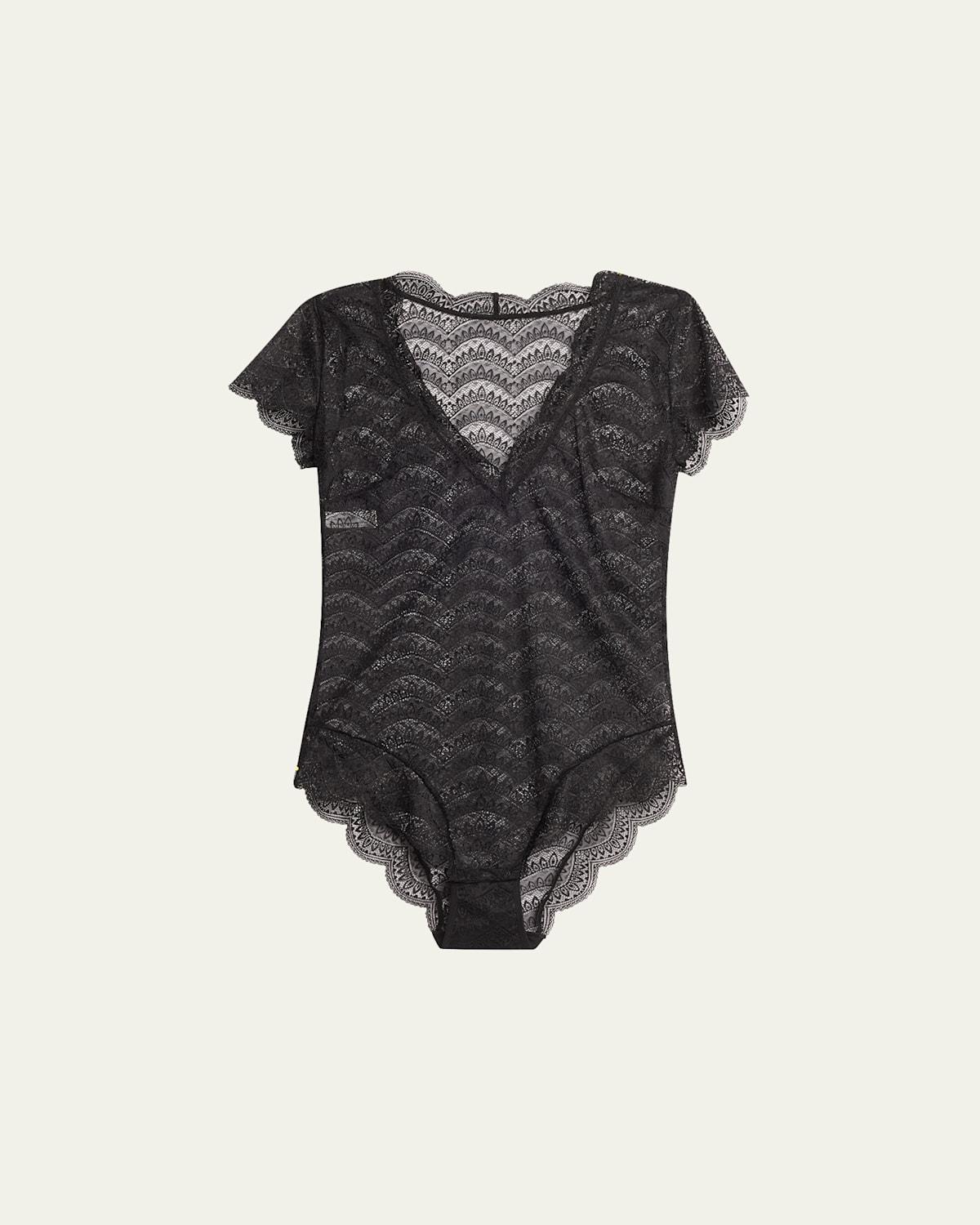 Karma Short-Sleeve Scalloped Lace Bodysuit
