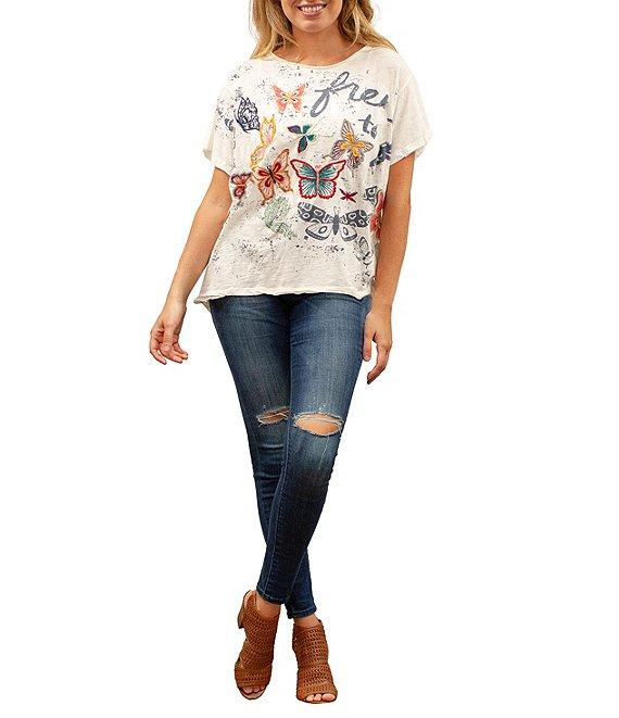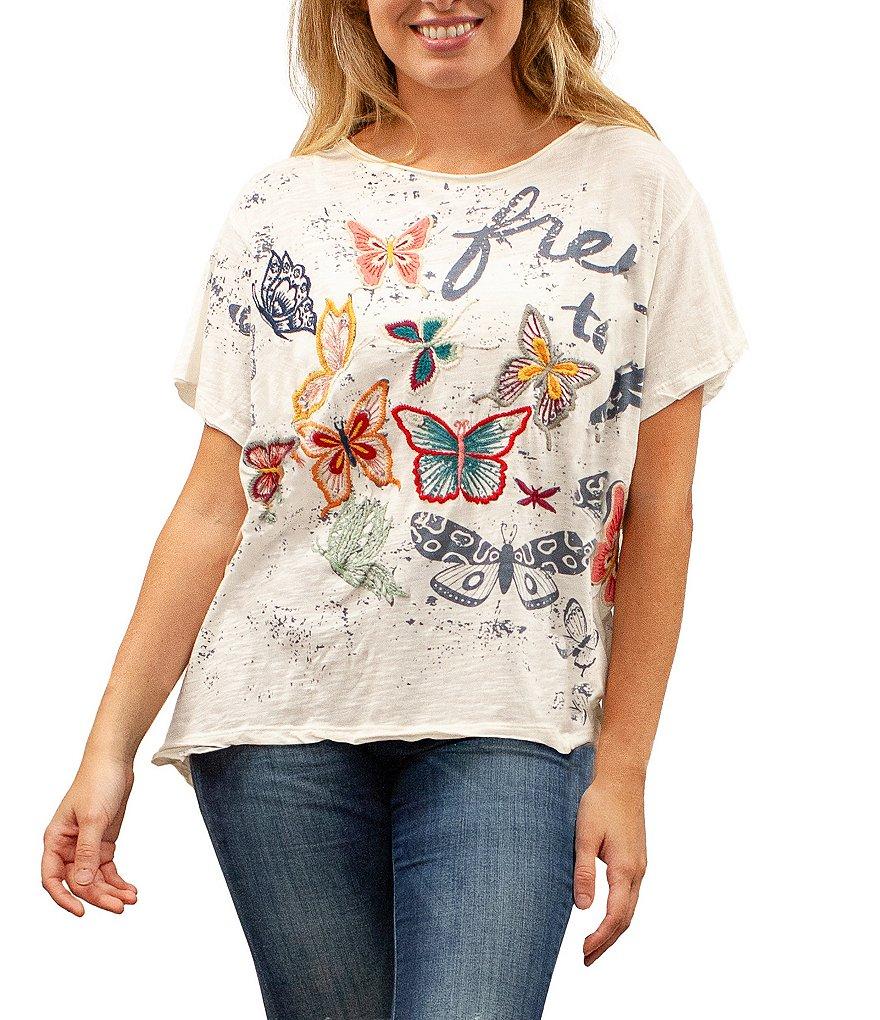 Karyn Seo Sariah Graphic Print Crew Neck Flutter Sleeve Oversize Fit Boxy Tee