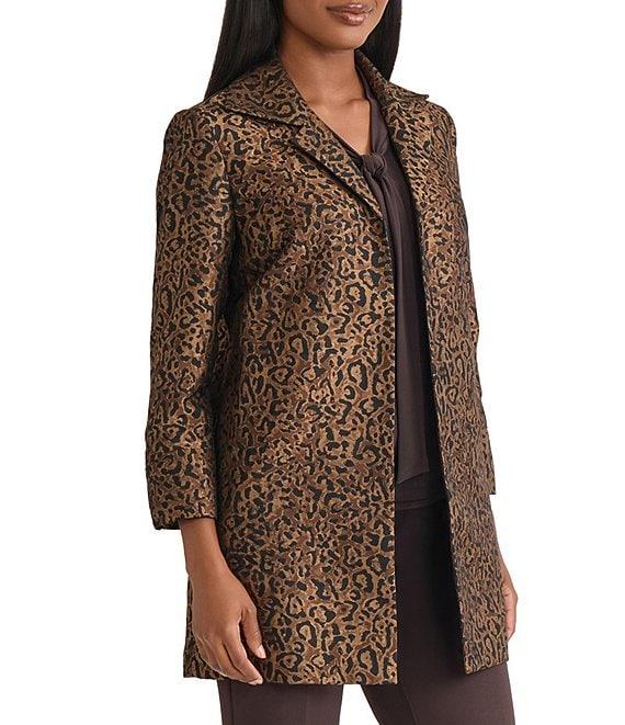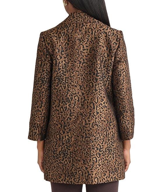 Kasper Leopard Swing Open Front Jacket with Cuffed Sleeves