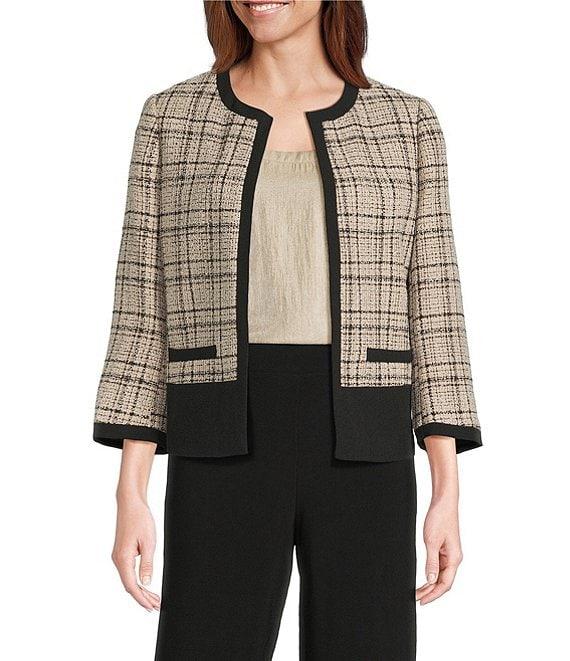 Kasper Long Sleeve Plaid Crepe Cardigan Jacket