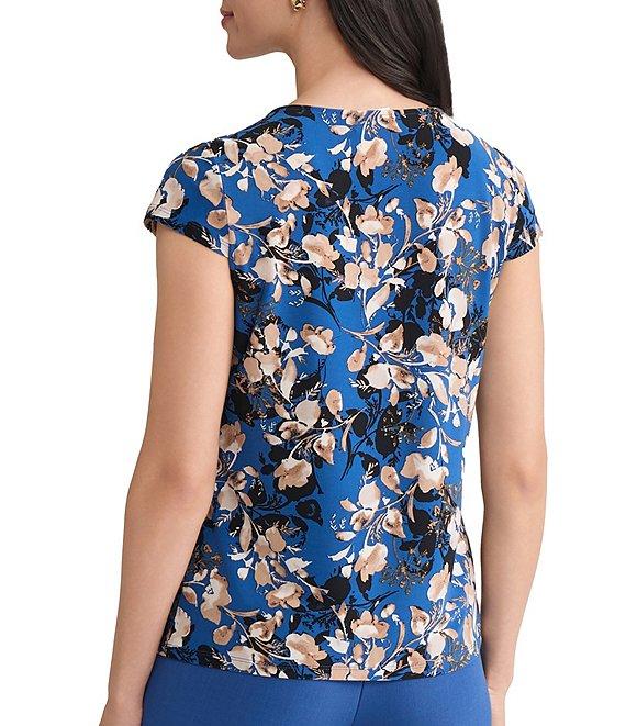 Kasper Printed Jersey Cowl Neck Cap Sleeve Top