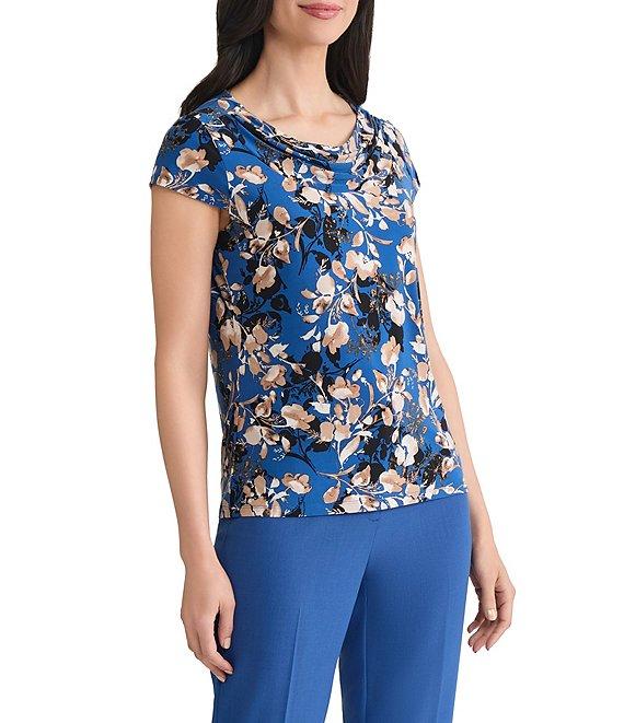 From Kasper Petite, this top features: Printed knit jersey Blouse silhouette Cowl neckline Cap sleeves Pullover construction Approx. 23" length Polyester/elastane Machine wash Imported.