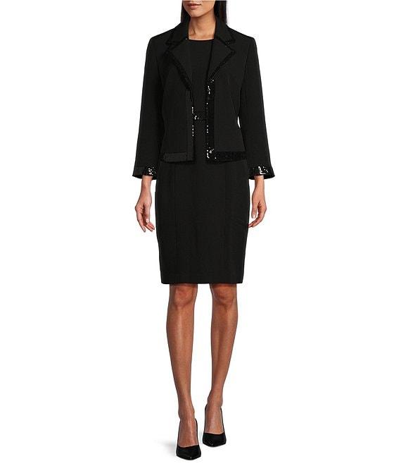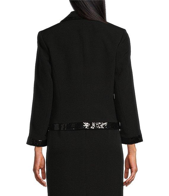 From Kasper Petite, this jacket features: Notch lapel neckline Long sleeves Sequin trim detailing Open-front construction Approx. 19.5" length Polyester/elastane Lined with polyester Dry clean Imported.