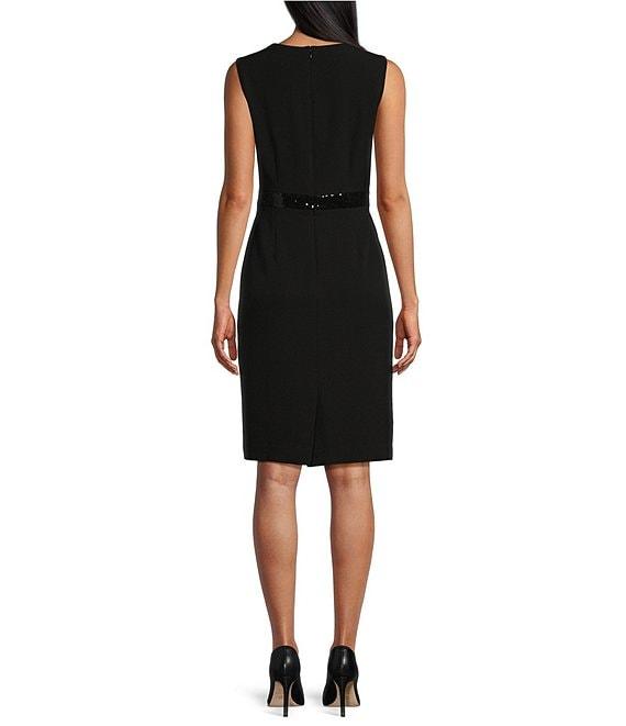Kasper Petite Size Sequin Trim Sheath Crew Neck Sleeveless Dress