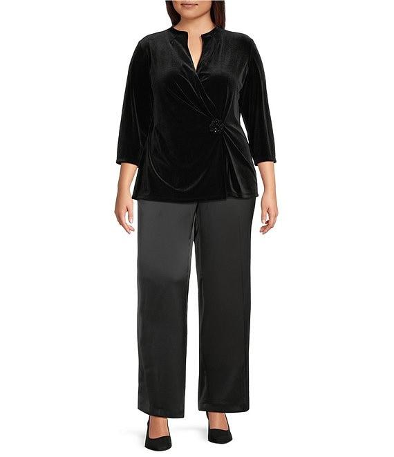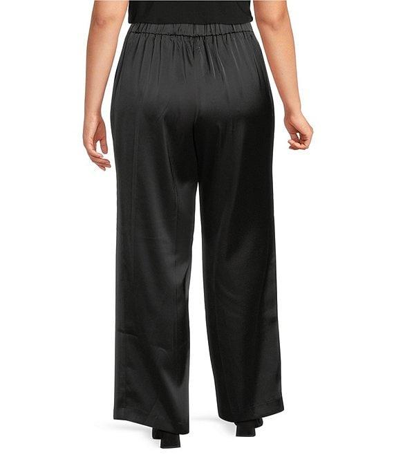 From Kasper Plus, these pants feature: Satin fabrication Trousers Full length Elastic back Front side slant pockets Pull on Approx. 31" length Dry clean Imported.