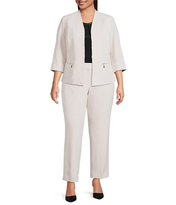 Kasper Plus Size Scoop Pleated Neck Hardware Detail Knit Blouse