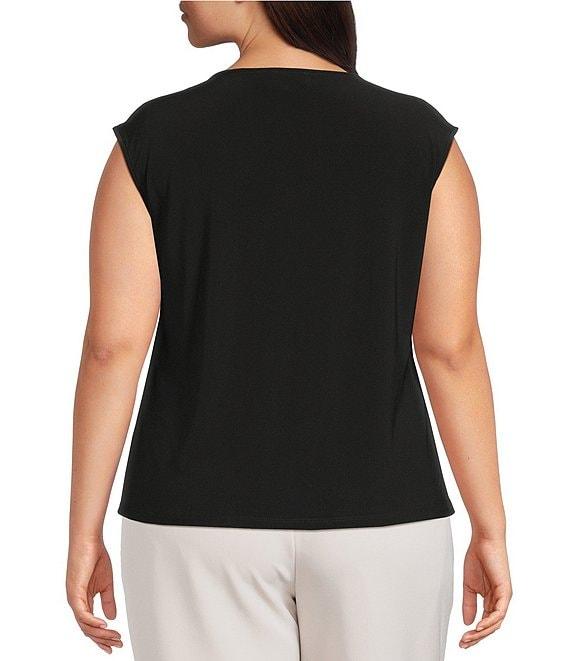 From Kasper Plus, this top features: Blouse silhouette Knit jersey fabrication Scoop neckline Pleating with hardware detail Sleeveless Pull on construction Approx. 26" length Polyester/elastane Machine wash cold Imported.
