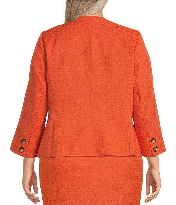 Kasper Plus Size Textured Patch Pocket Crew Neck 3/4 Sleeve Jacket