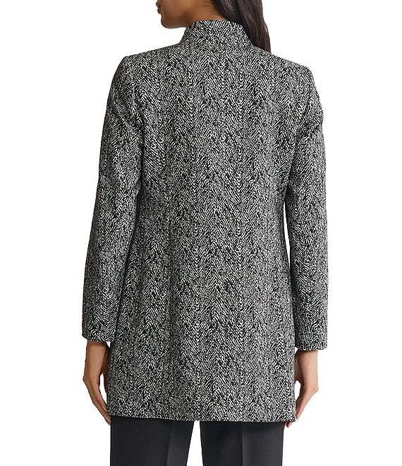 Kasper Stand Collar Long Sleeve Knit Jacquard Topper Jacket