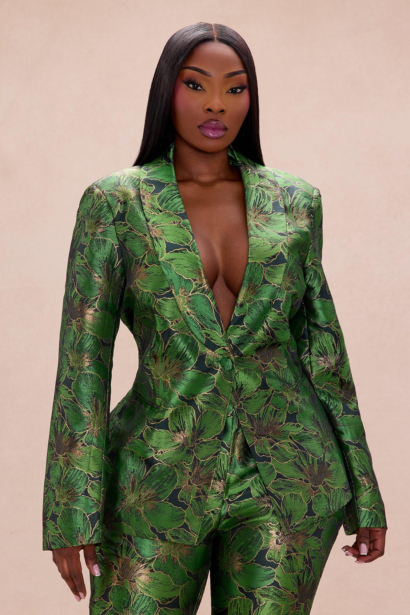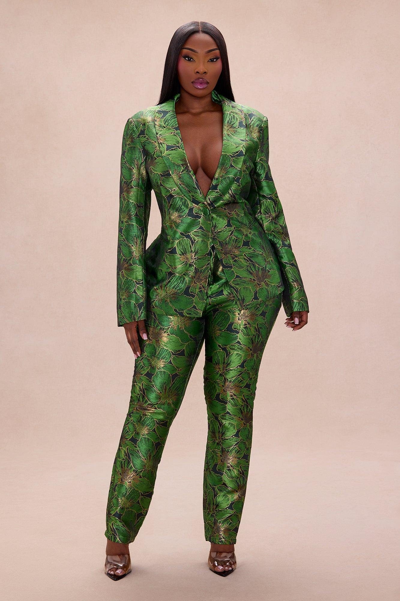 Kassandra Jacquard Blazer Suit Set - Green Female