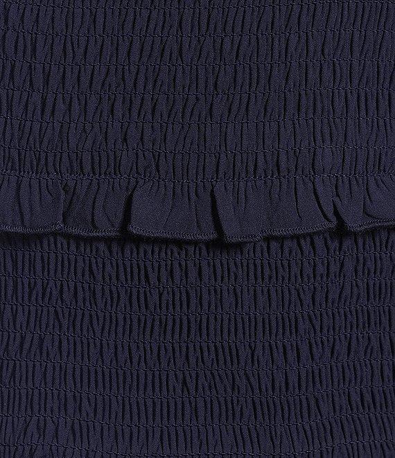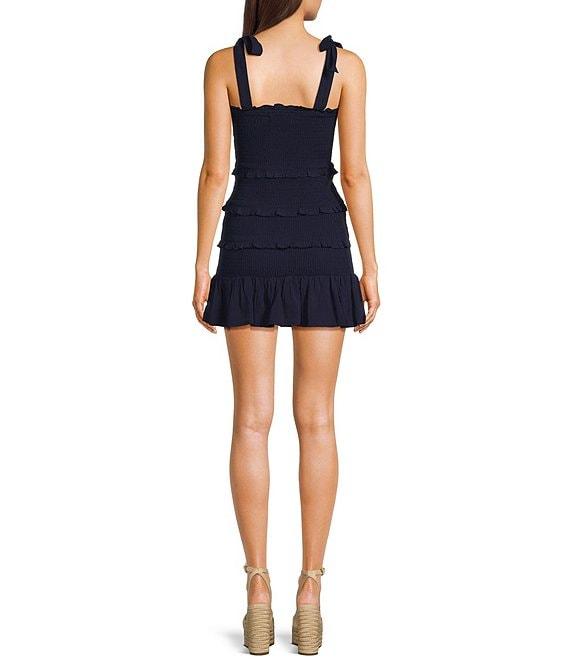 KatieJNYC Evan Square Neck Tie Shoulder Solid Smocked Dress