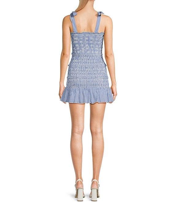 KatieJNYC Evan Square Neck Tie Shoulder Stripe Smocked Dress