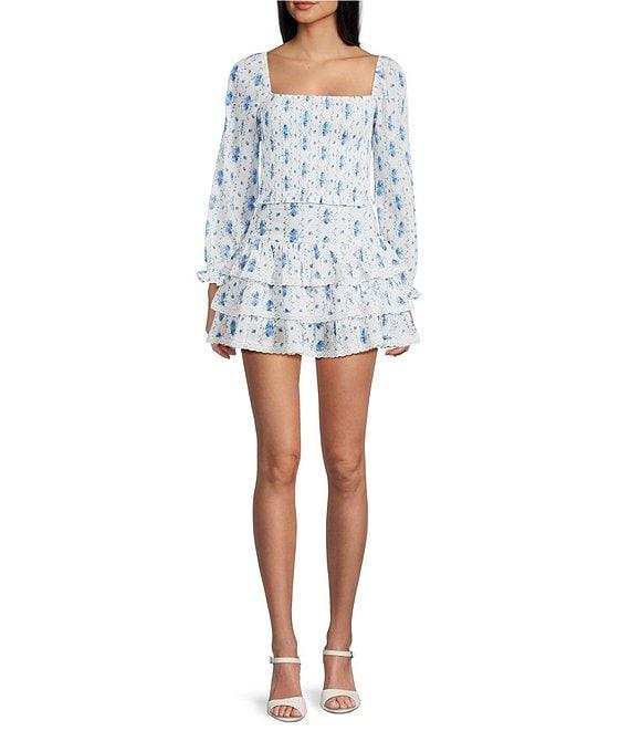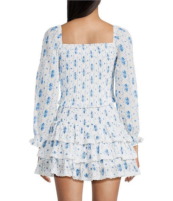 KatieJNYC Marlee Floral Stripe Print Square Neck Long Sleeve Top