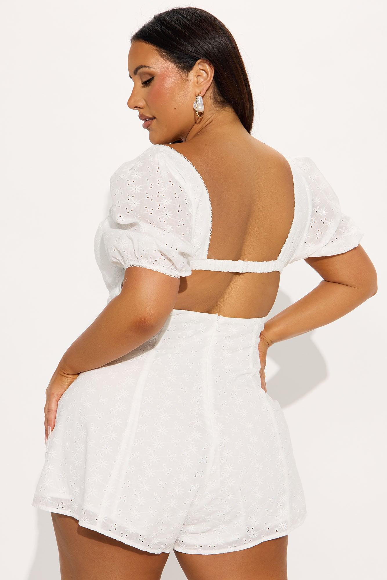 Katy Eyelet Puff Sleeve Romper - White
