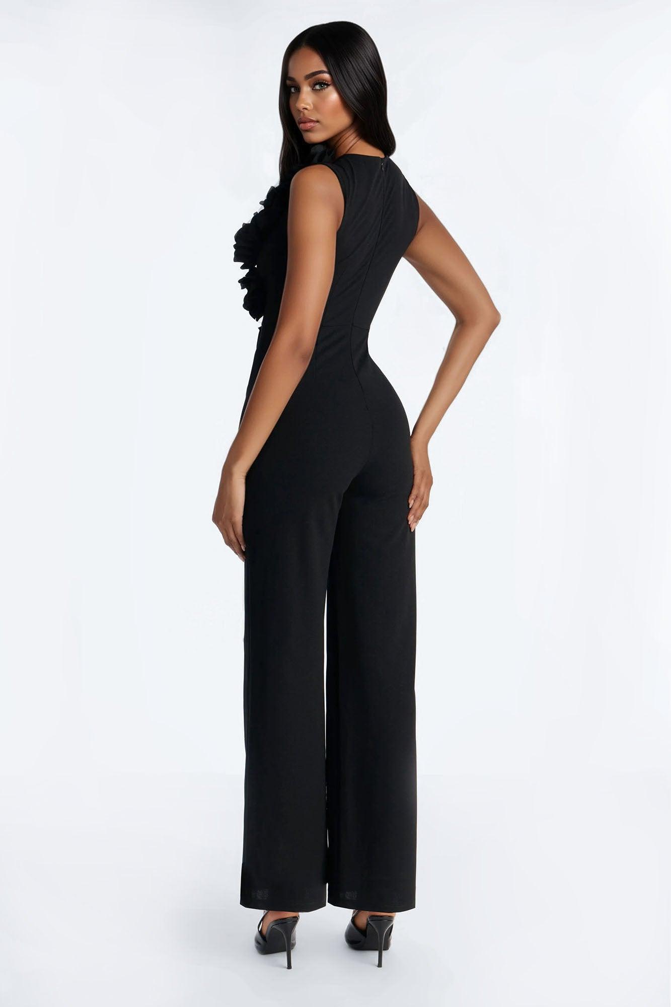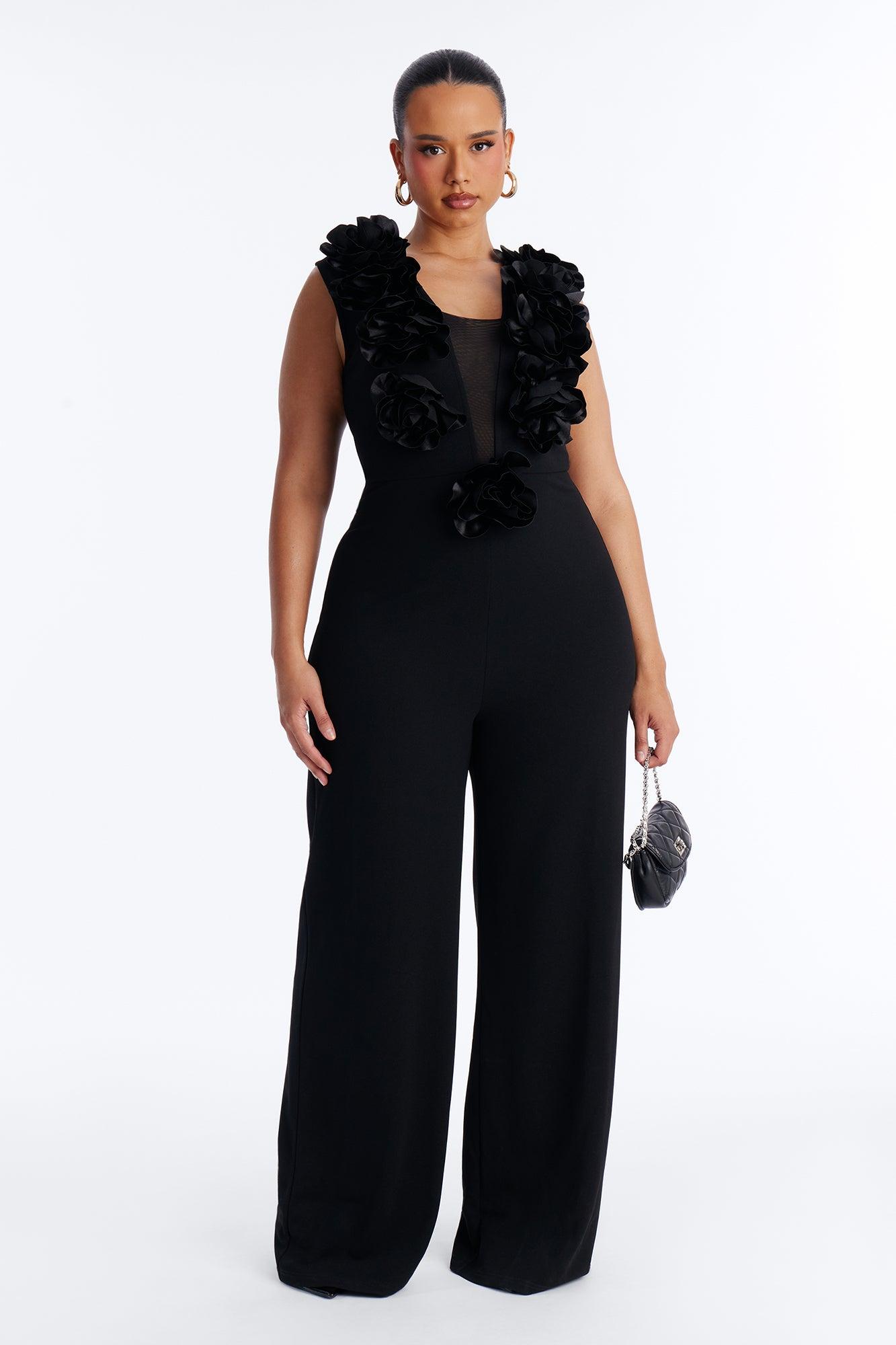 Katya 3D Flower Wide Leg Jumpsuit - Black Female