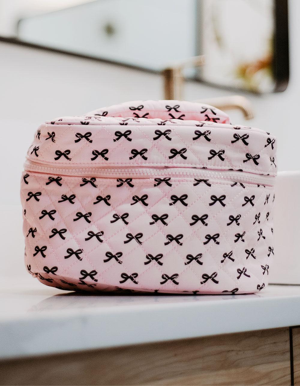 KATYDID Mini Black Bows Make Up Bag - LIGHT PINK