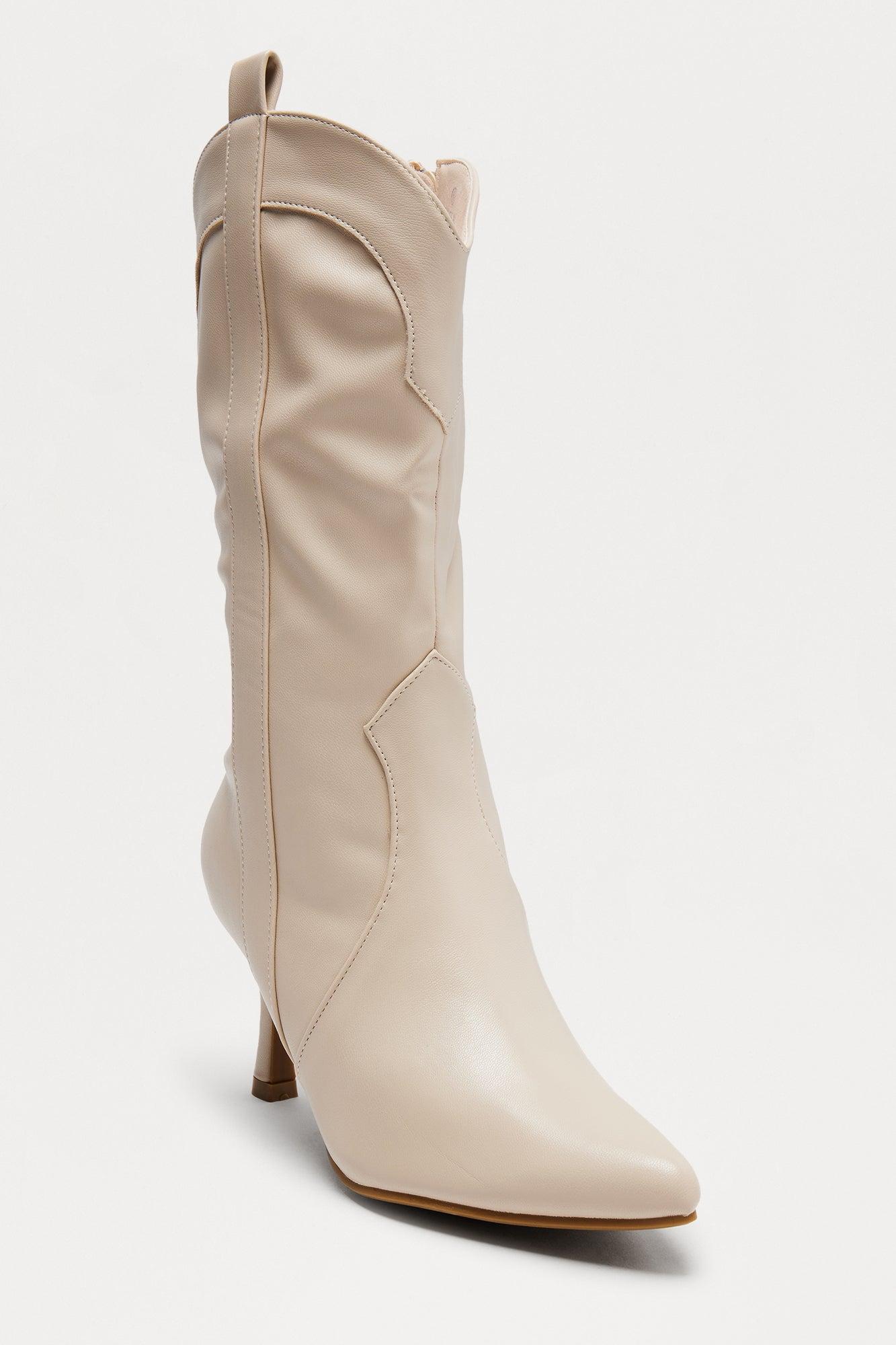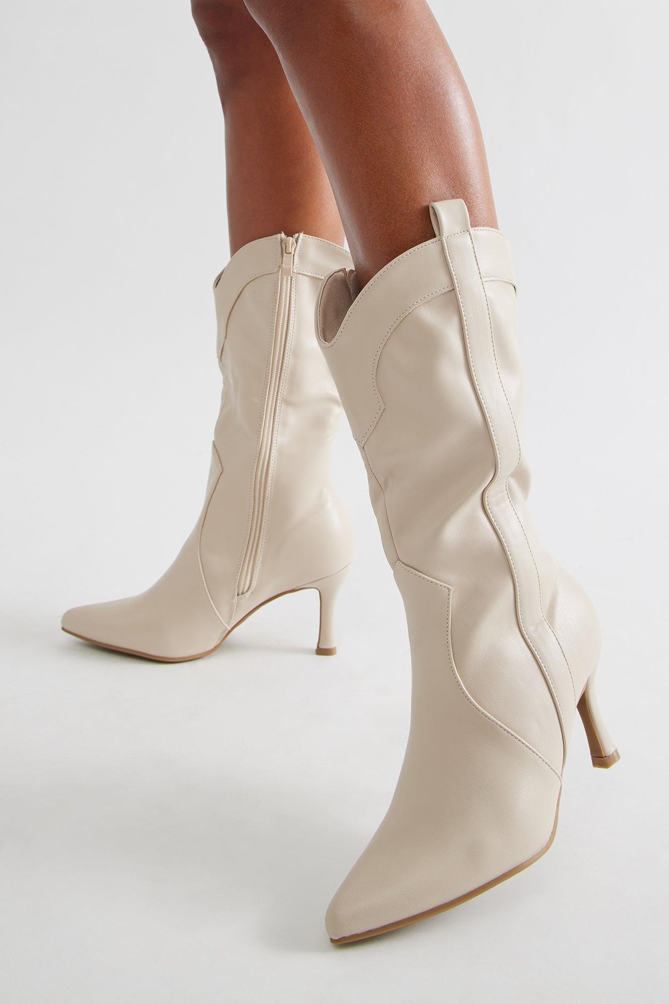 Available In Black And Ivory. Heeled Boots Cowboy Boots Pointed Toe Side Zipper 3" High Heel Imported California Proposition 65WARNING: Cancer and Reproductive Harm - www.P65Warnings.ca.gov.