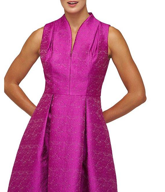 Kay Unger Allegra Textured Jacquard Split V-Neckline Sleeveless A-Line Midi Dress