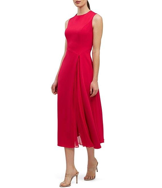 Kay Unger Elliot Stretch Crepe Asymmetric Waistline Pleated Midi Dress