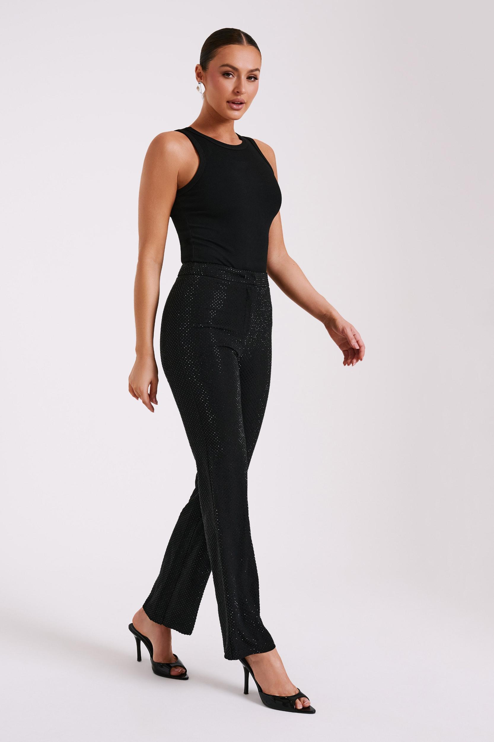 Just enough shine.The KAYCEE are a pair of straight leg pants embellished with diamantes sprinkled throughout the fabrication adding an element of subtle shine. Crafted from our soft MESHKI blend fabrication, style with the Rhett Square Diamante Jacket for the perfect evening look.