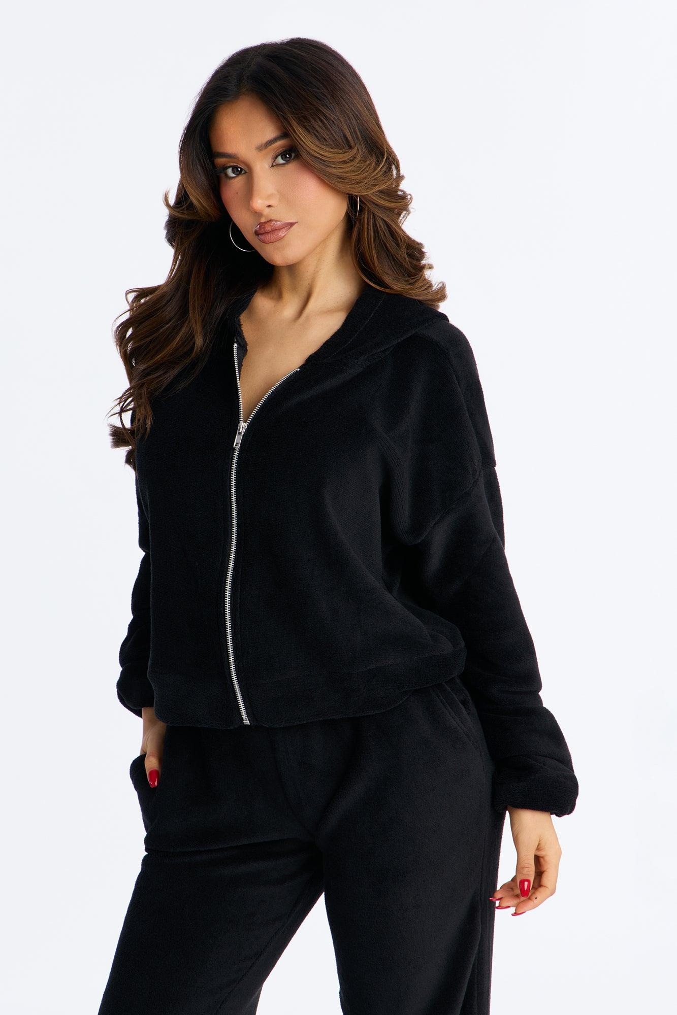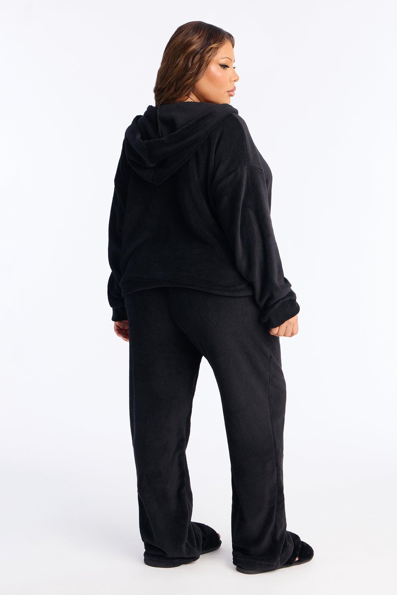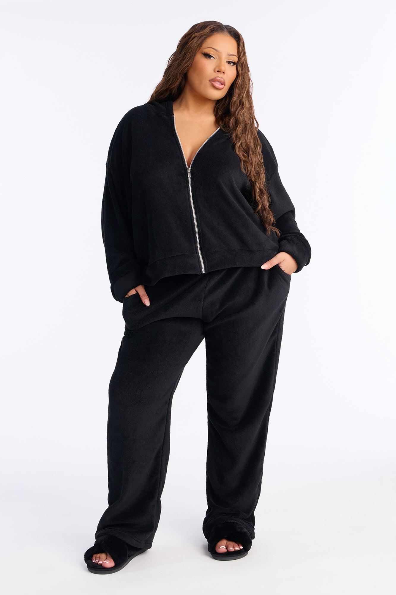 Available In Black, Ivory And Pink. PJ Pant Set Long Sleeve Hoodie Zip Front Matching Pants Drawstring Waistband Pockets Stretch Final Sale Self : 100% Polyester Imported California Proposition 65WARNING: Cancer and Reproductive Harm - www.P65Warnings.ca.gov.