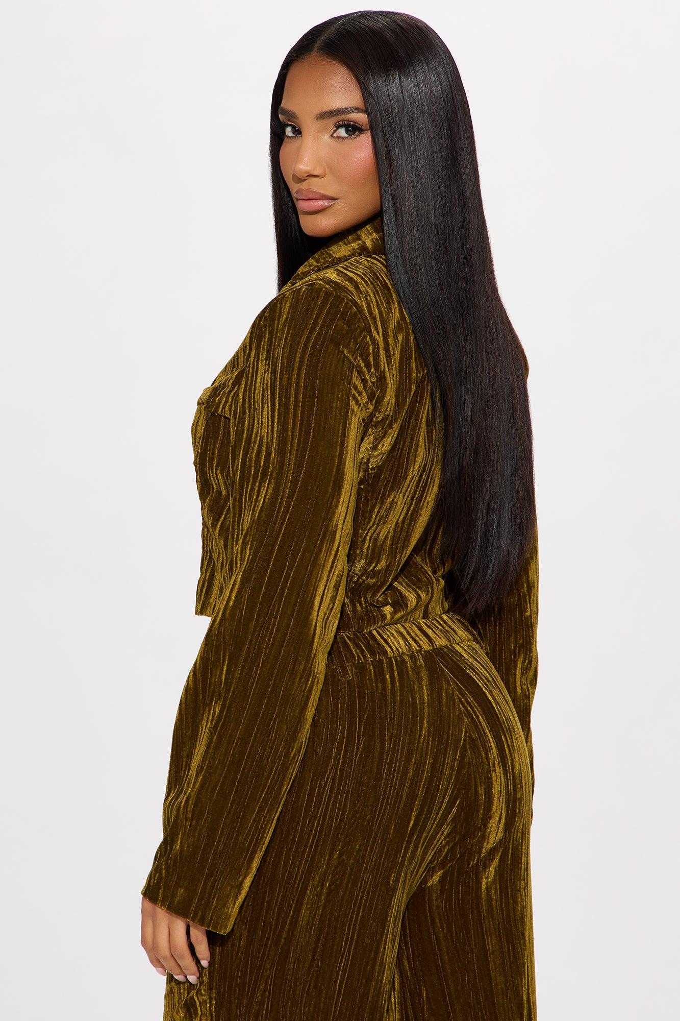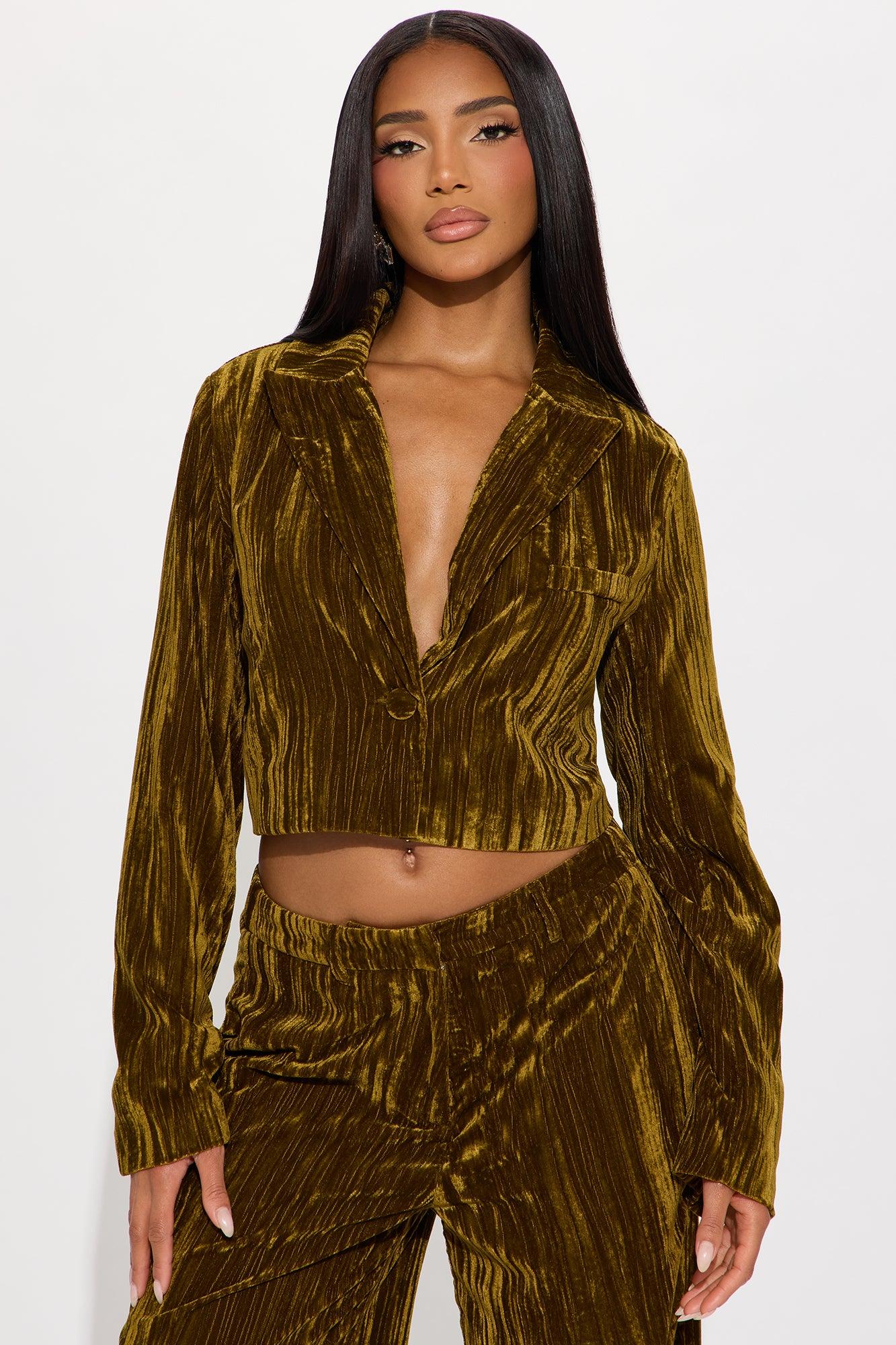Keep You Wondering Cropped Velvet Blazer - Olive Female