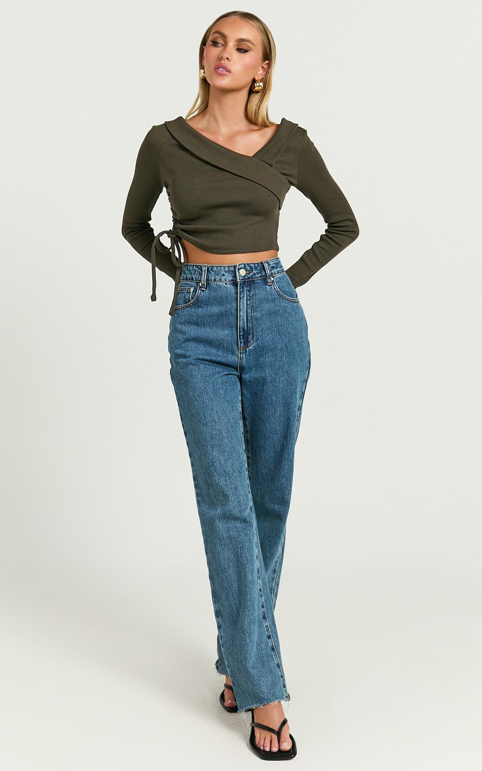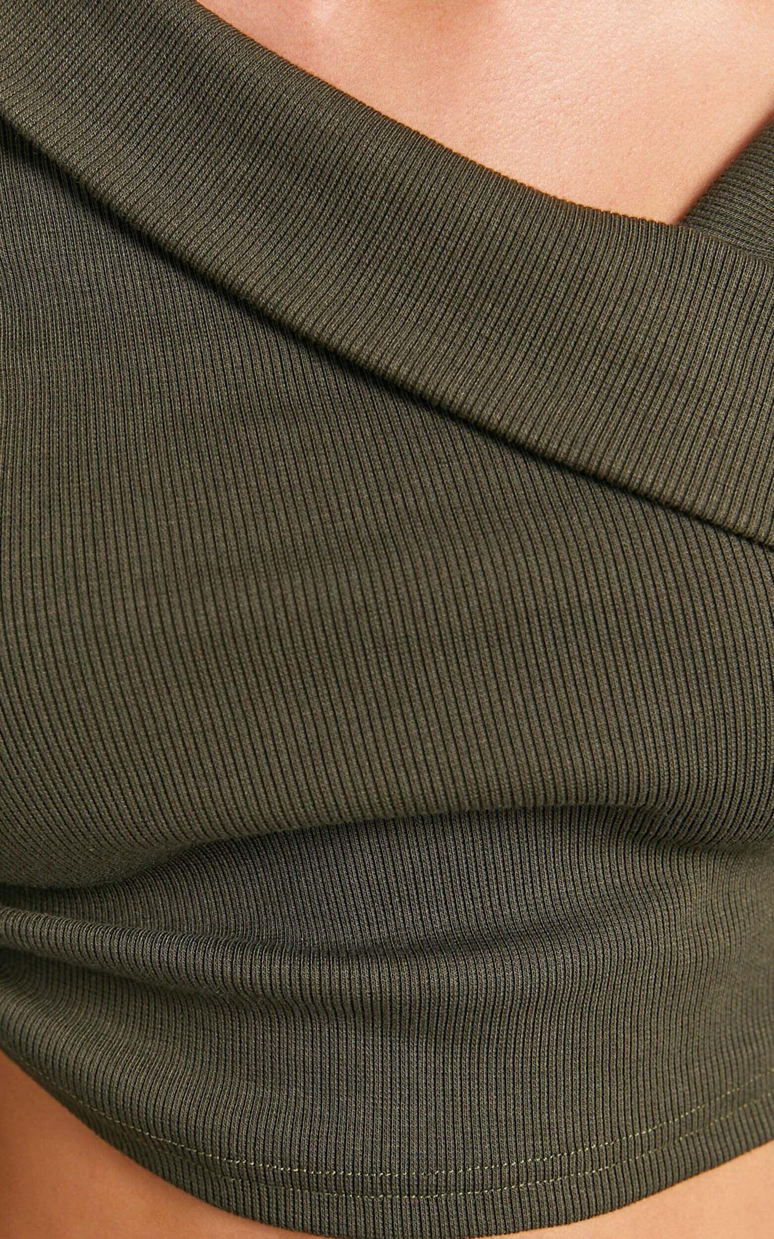 Get ready to turn heads in the Keisha Top - a masterpiece of style that celebrates the unique flair in every woman. With its asymmetrical design and chic long sleeve, this dark olive drawstring top is crafted for those who dare to stand out. Fashioned from the softest ribbed jersey cotton, it promises not only to make a statement but to offer unbeatable comfort through any adventure your day might hold.Product Details:Pull on styleRibbed JerseyAsymmetrical necklineCasual wearCrop lengthLong sleeveCotton materialSize and FitSize S / 8 length: 37cm / 14.57inMaterial and CareMain Fabric: 65% Cotton, 35% PolyesterLow Stretch