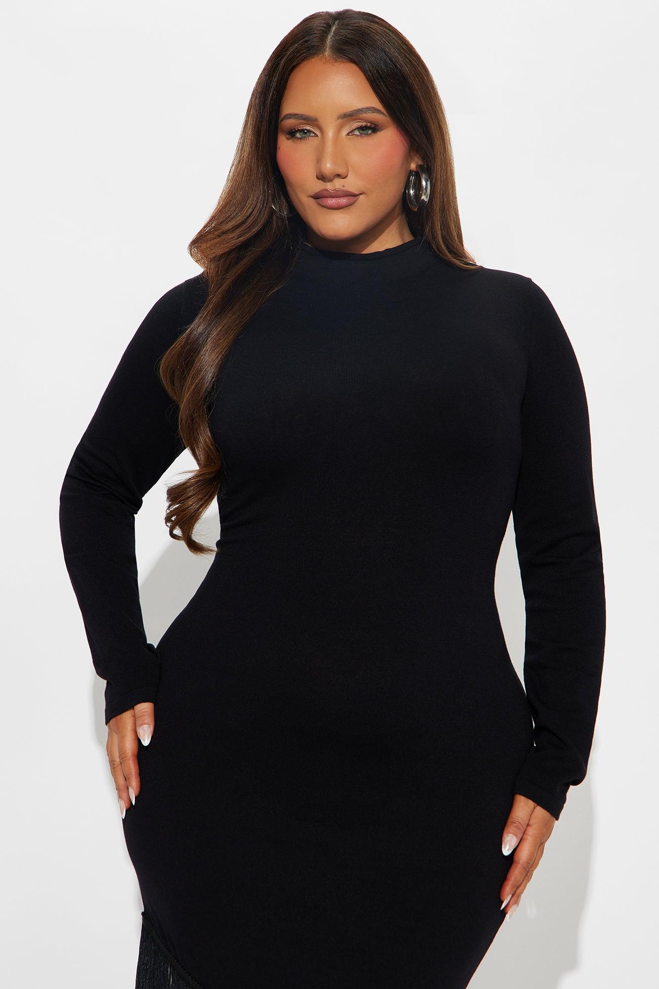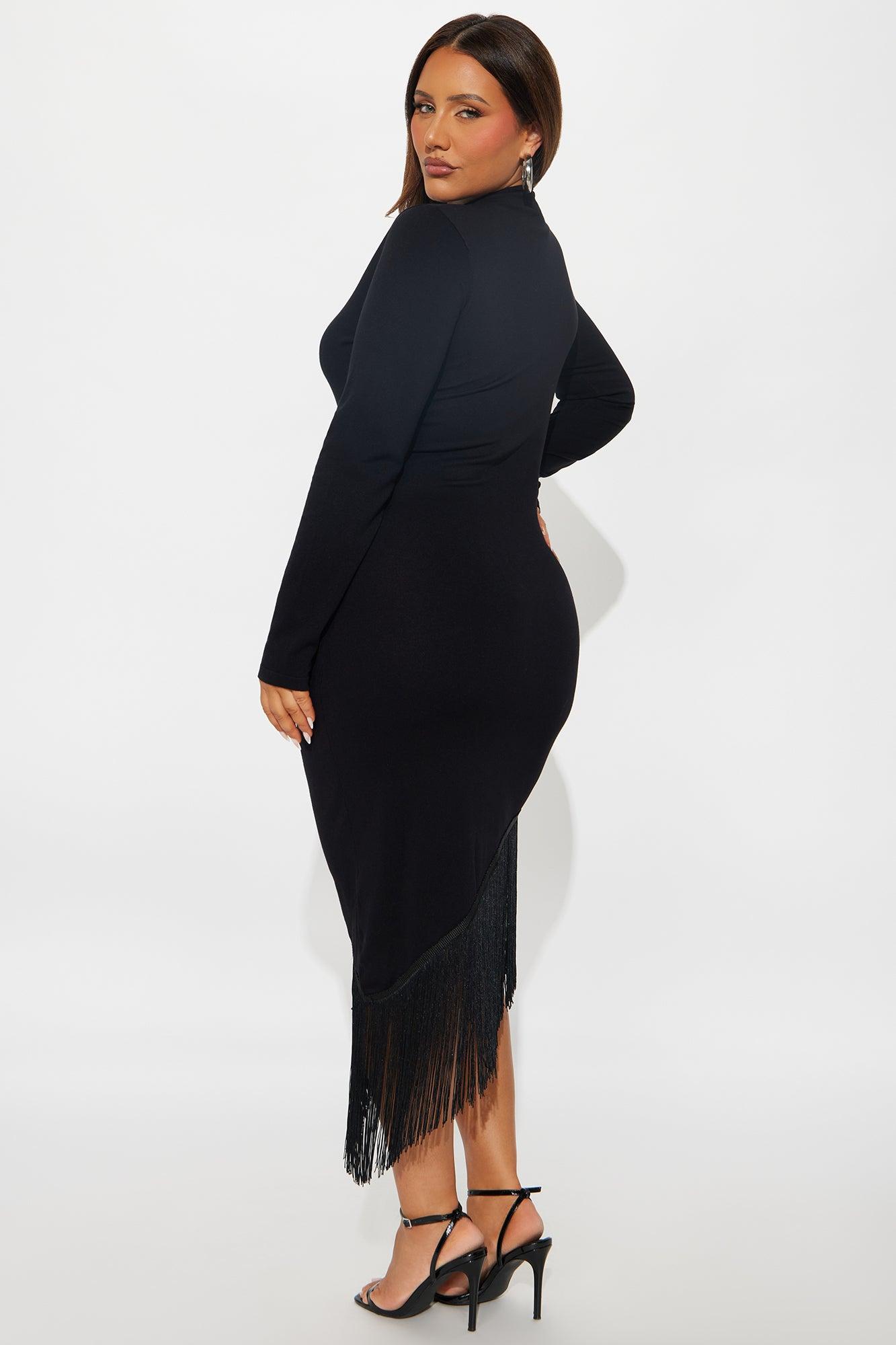 Kenna Asymmetrical Fringe Sweater Midi Dress - Black Female