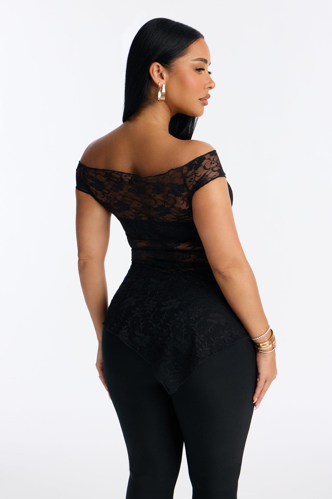 Kenna Off Shoulder Asymmetrical Lace Top - Black Female