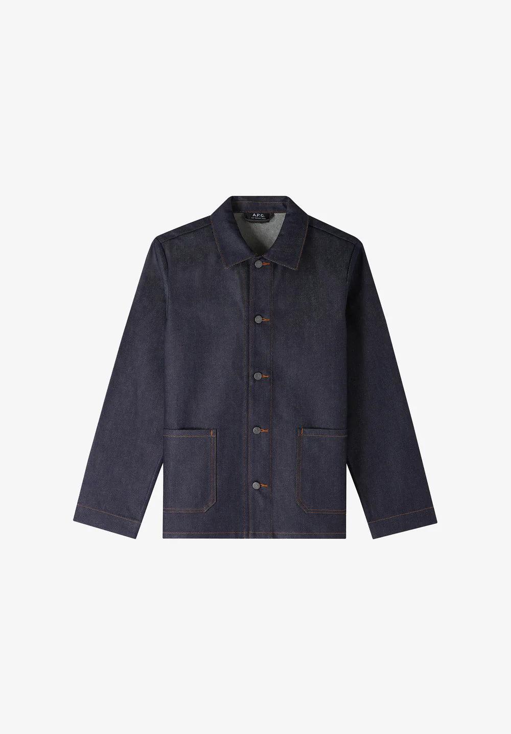 A.P.C. Men's jacket.- Japanese material.- Straight cut.- Classic collar.- Five buttons.- Two waist pockets.- Hang loop at back of neck.- Unlined.- A.P.C. logo embroidered at bottom of left pocket.