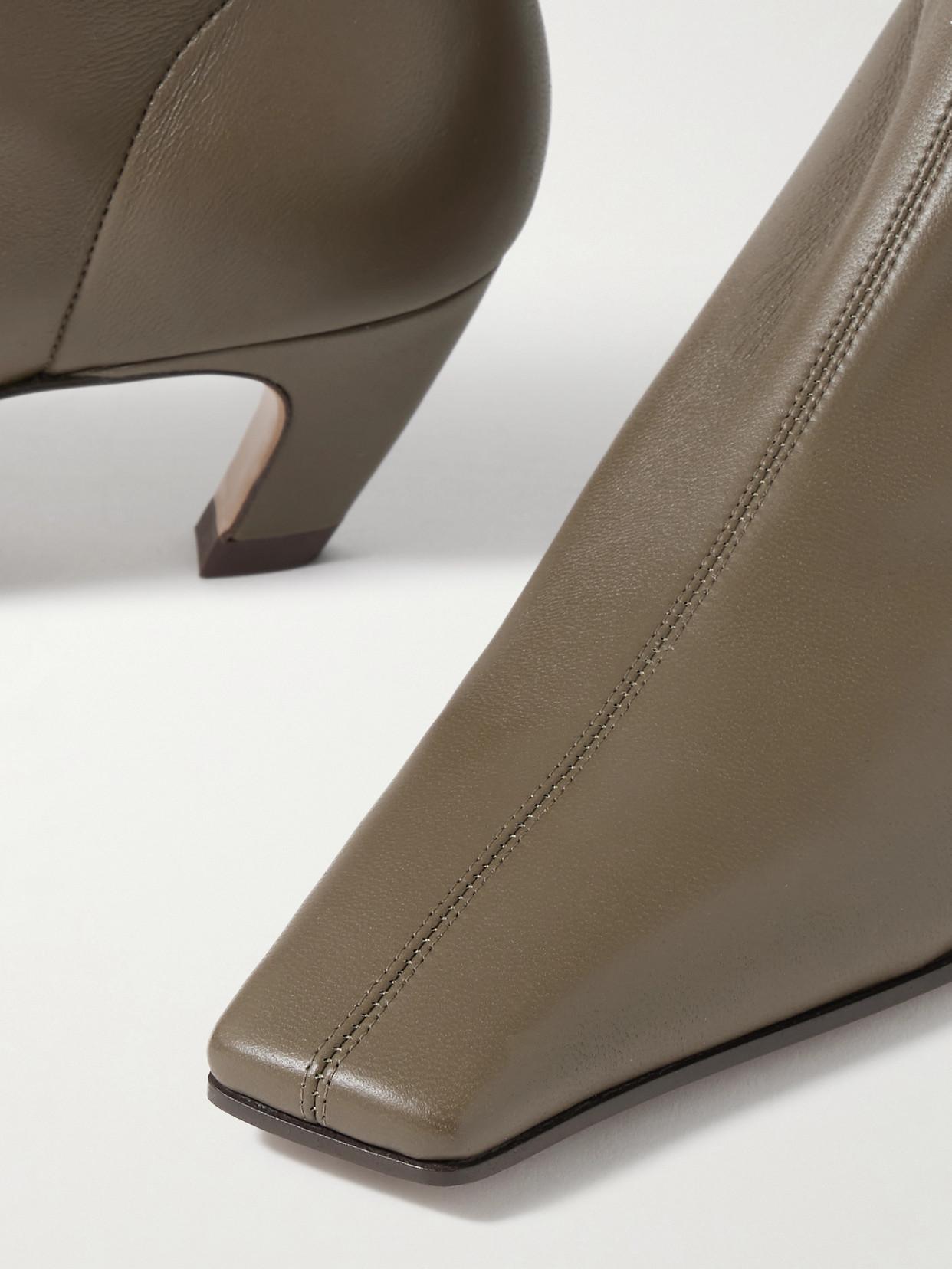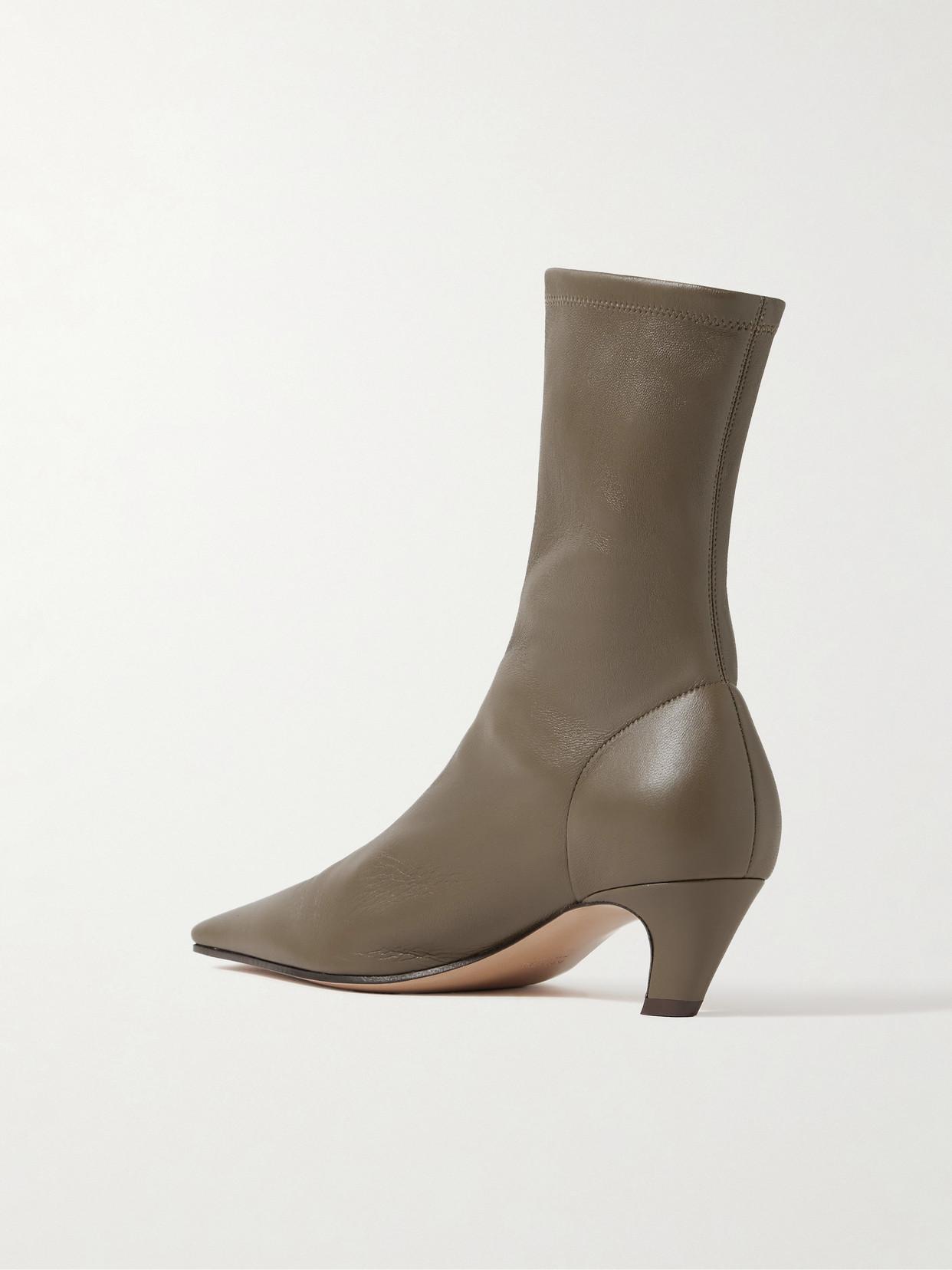 Shop Khaite Arizona Leather Ankle Boots In Brown from 800+ stores, starting at $882. Leather Ankle Boots With Square Toe, Back Zip Closure, Curved Heel, Leather Sole. Composition: 100% Lambskin Country Of Origin: Italy Eu Woman - Heels: 4 CmBuy this luxury Boots today!