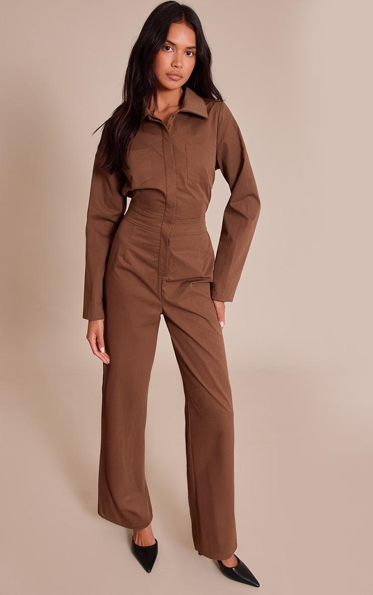 The khaki utility long sleeve jumpsuit is a functional-meets-fashion staple. Crafted in durable woven fabric, it features utility-inspired details such as chest pockets, a belted waist, and tapered legs. The khaki tone keeps it classic, while the cinched waist adds a flattering silhouette. Wear with chunky boots for a streetwear edge, or roll up the sleeves and pair with strappy sandals for a casual-chic finish.Length approx 155cm/61inch (Based on sample size US 4)Model wears size UK 8/ EU 36/ AUS 8/ US 4Model Height - 5ft 9inchp]:!mb-4inch>Brand: PrettyLittleThingCategory: DressesProduct type: Wide Leg JumpsuitColor: KhakiMaterial: Tailored WovenOccasion: Day