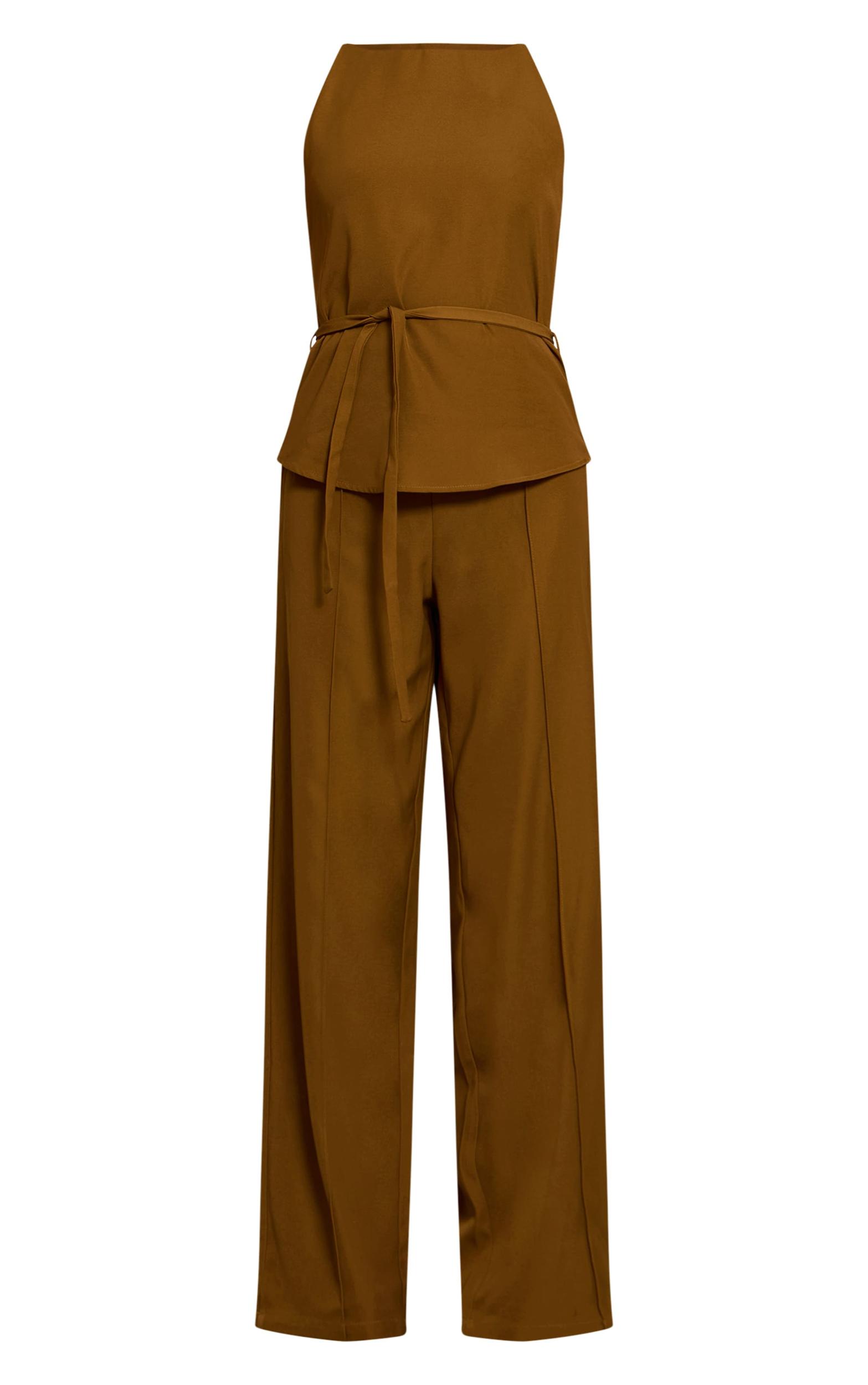 Keep it sleek in the khaki woven belt tied straight leg jumpsuit. Made from a khaki woven material, it features a belted waist, tie detailing, and a straight leg cut for structured elegance. Pair with slip on mule heels and a clutch bag for a look like no other.Length approx 155cm/61inch (Based on sample size US 4)Model wears size UK 8/ EU 36/ AUS 8/ US 4Model Height - 5ft 9inchp]:!mb-4inch>Brand: PrettyLittleThingCategory: DressesProduct type: Tailored JumpsuitColor: KhakiMaterial: Tailored WovenOccasion: Evening