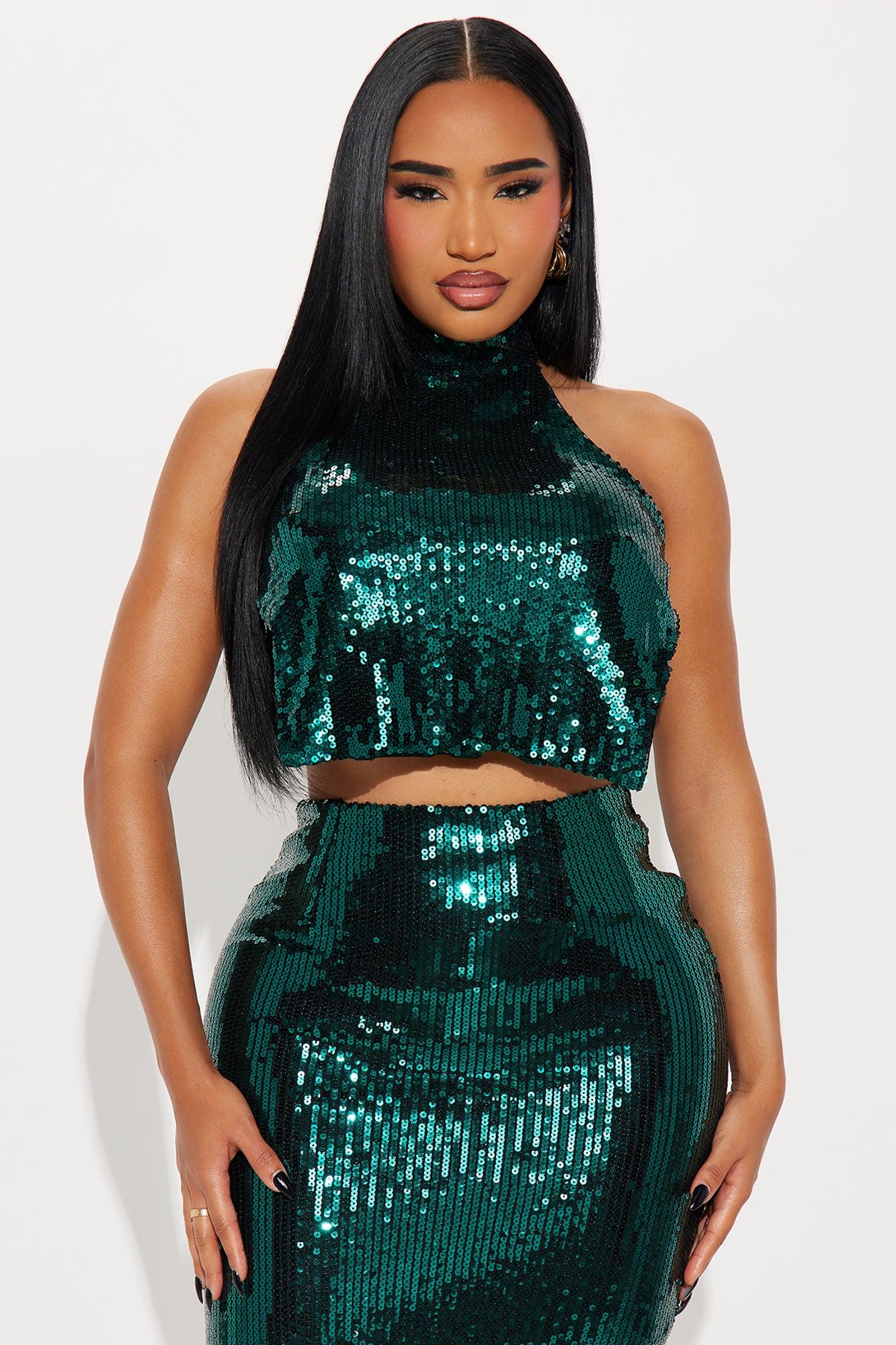 Khloe Sequin Halter Maxi Skirt Set - Hunter