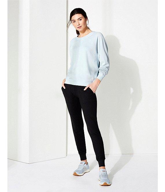 From Kinesis, these joggers feature: super-soft suede jersey fabrication slim jogger silhouette folded rib waistband Two front pockets Moisture-wicking pull-on construction Approx. 28" inseam Polyester/spandex Machine wash/tumble dry Imported.