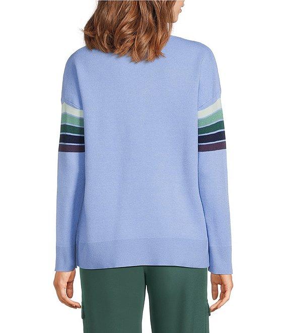 From Kinesis, this sweater features: Jacquard fabrication Stripe print Crew neckline Long sleeves Pullover construction Viscose/polyester/nylon Machine wash/dry flat Imported.