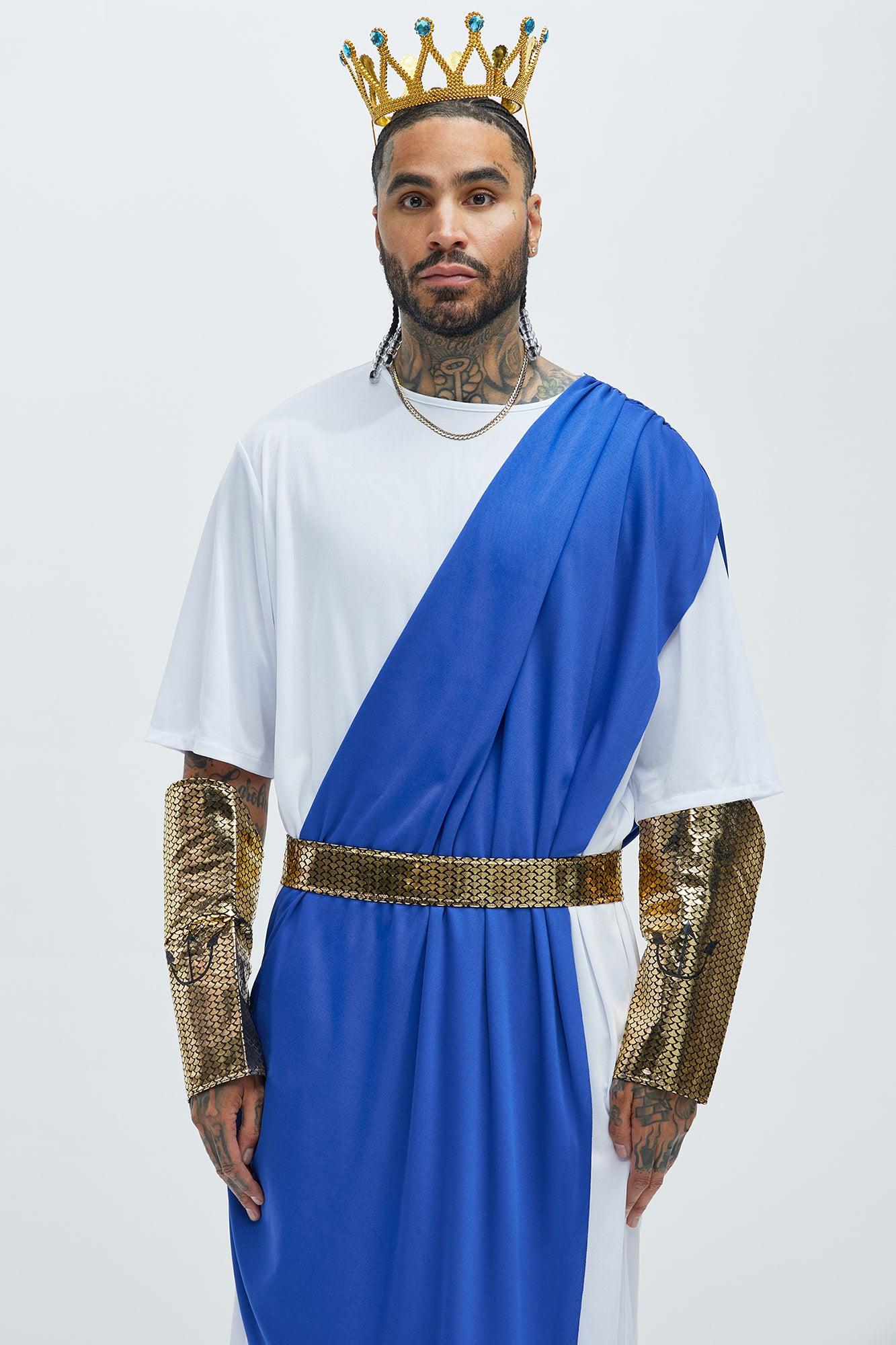 Available In Multi Color. 4 Piece Costume King Neptune Tunic Belt Crown Arm Cuffs 100% Polyester Imported Final Sale California Proposition 65 WARNING: Cancer and Reproductive Harm - www.P65Warnings.ca.gov.