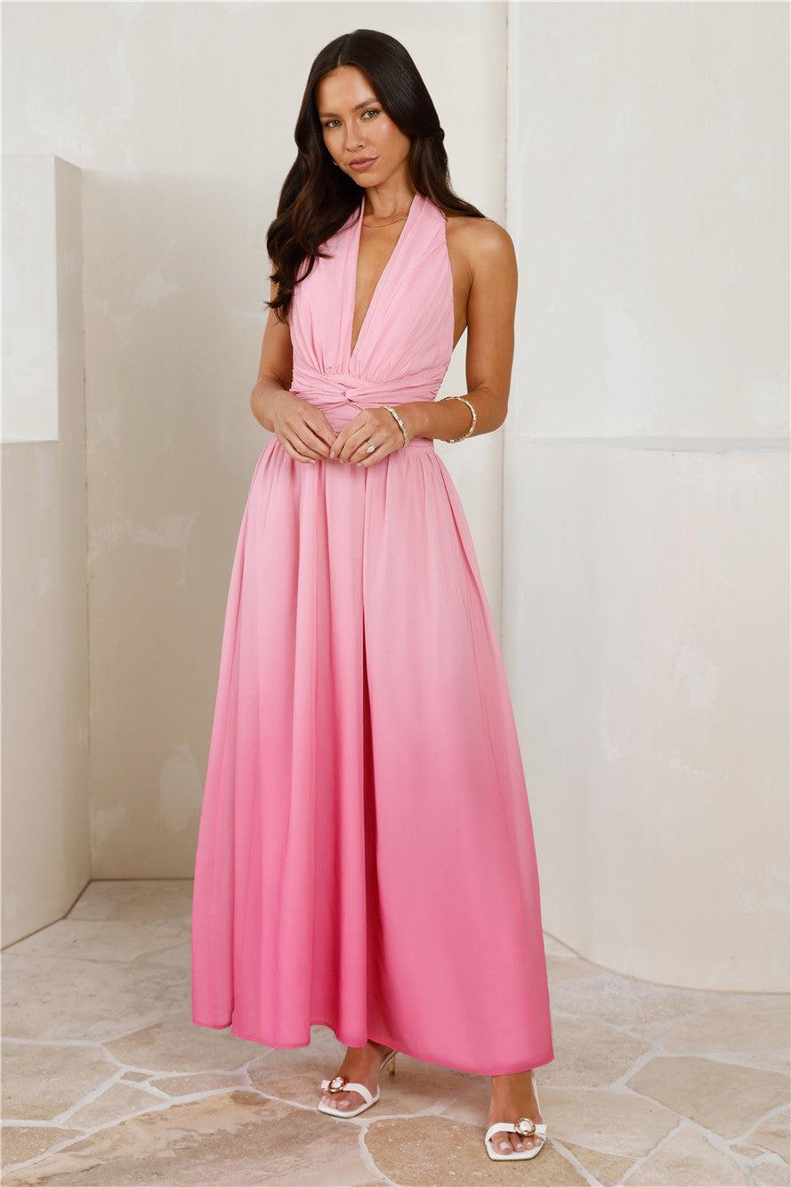 Kiss And Tell Halter Maxi Dress Pink