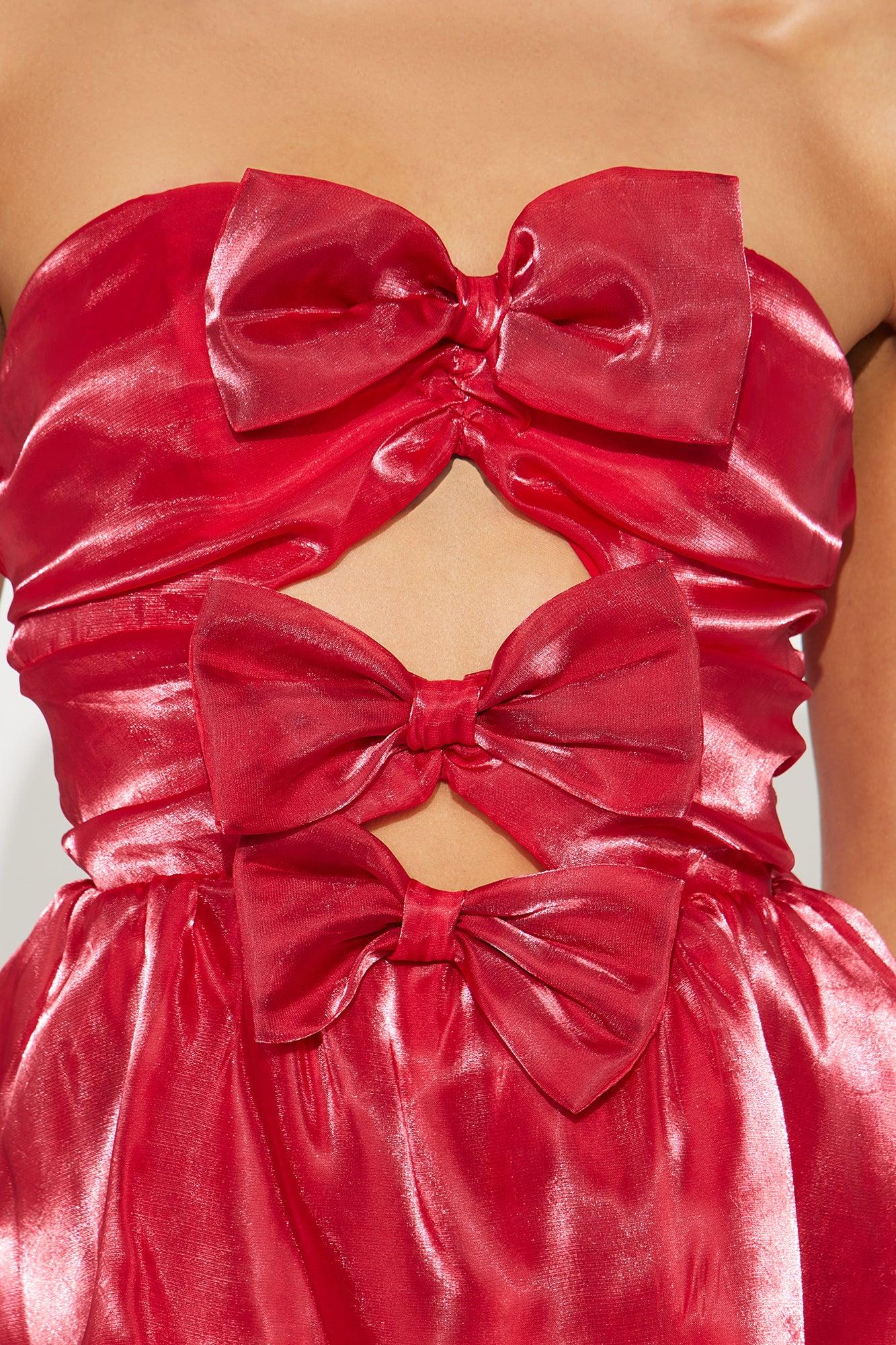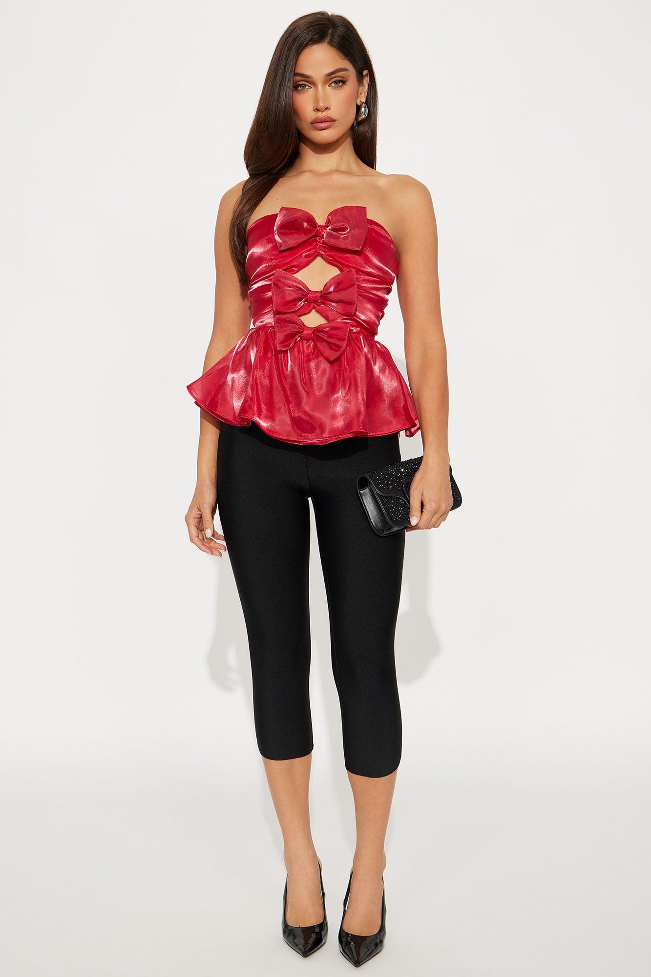 Kiss Goodbye Bows Shimmer Chiffon Top - Red Female