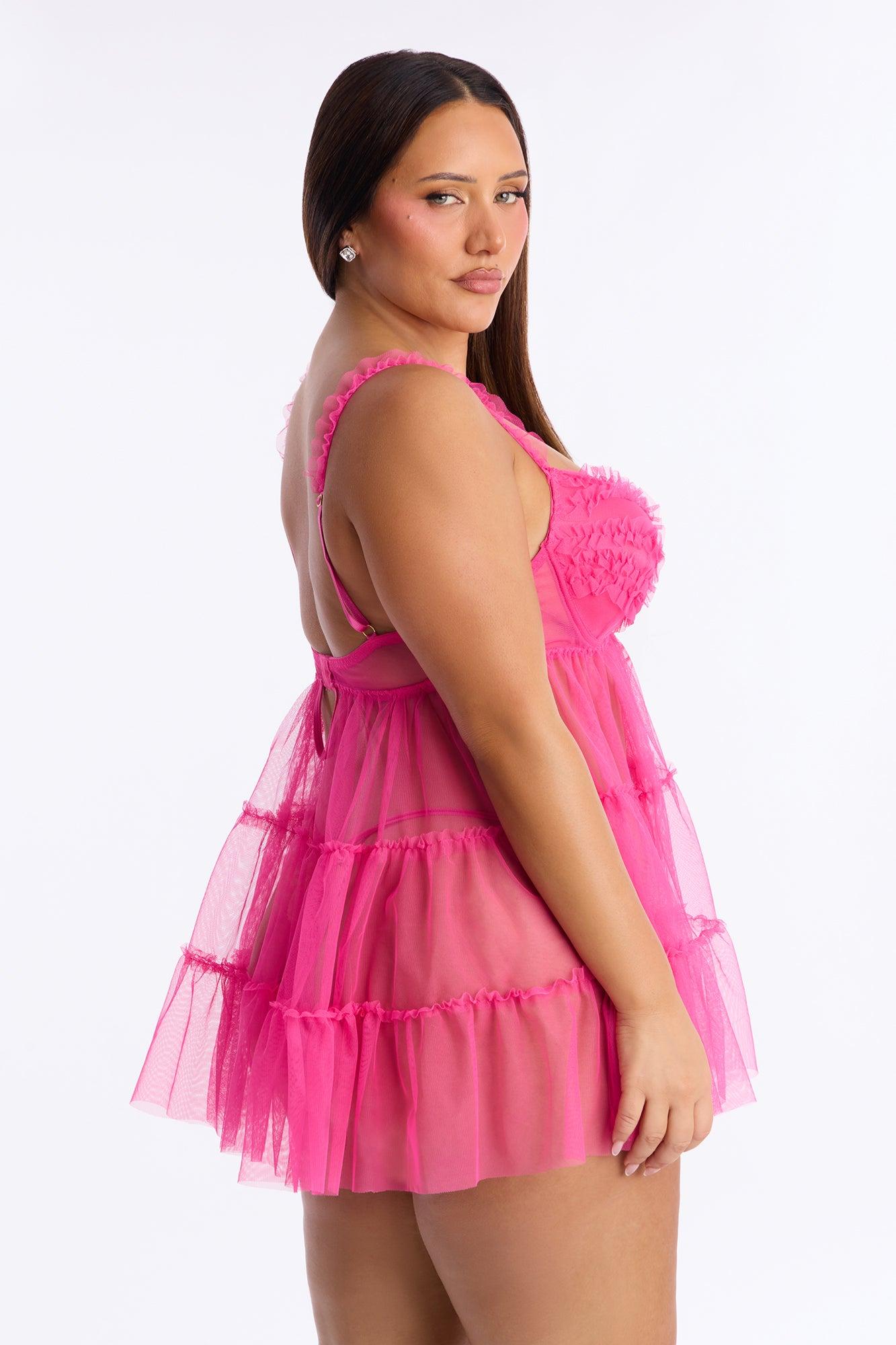 Kiss Me More Ruffle Babydoll - Fuchsia Female