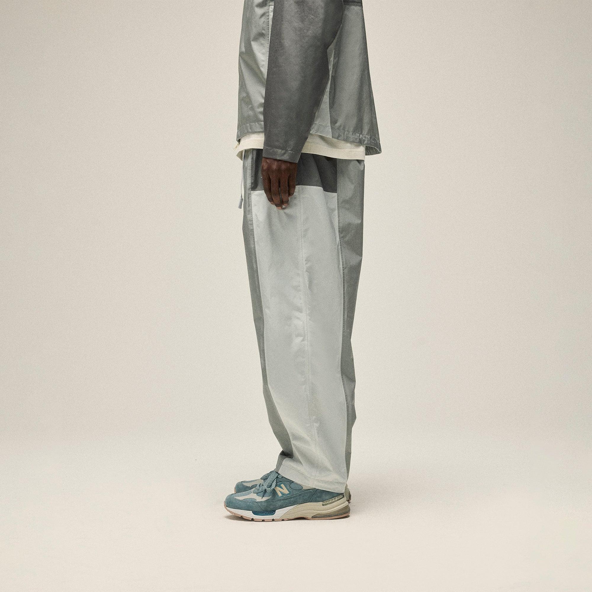 Tech wrinkle nylon fabric Bonded color-blocked paneling throughout Water-resistant Elasticated waistband construction with webbing belt and branded buckle Water-resistant zippers at front pocket and back welt Mesh pocketing Heat transfer print at wearers left thigh Unlined See garment tag for care instructions Style: khm060826-022 Color: Fin Material: Nylon