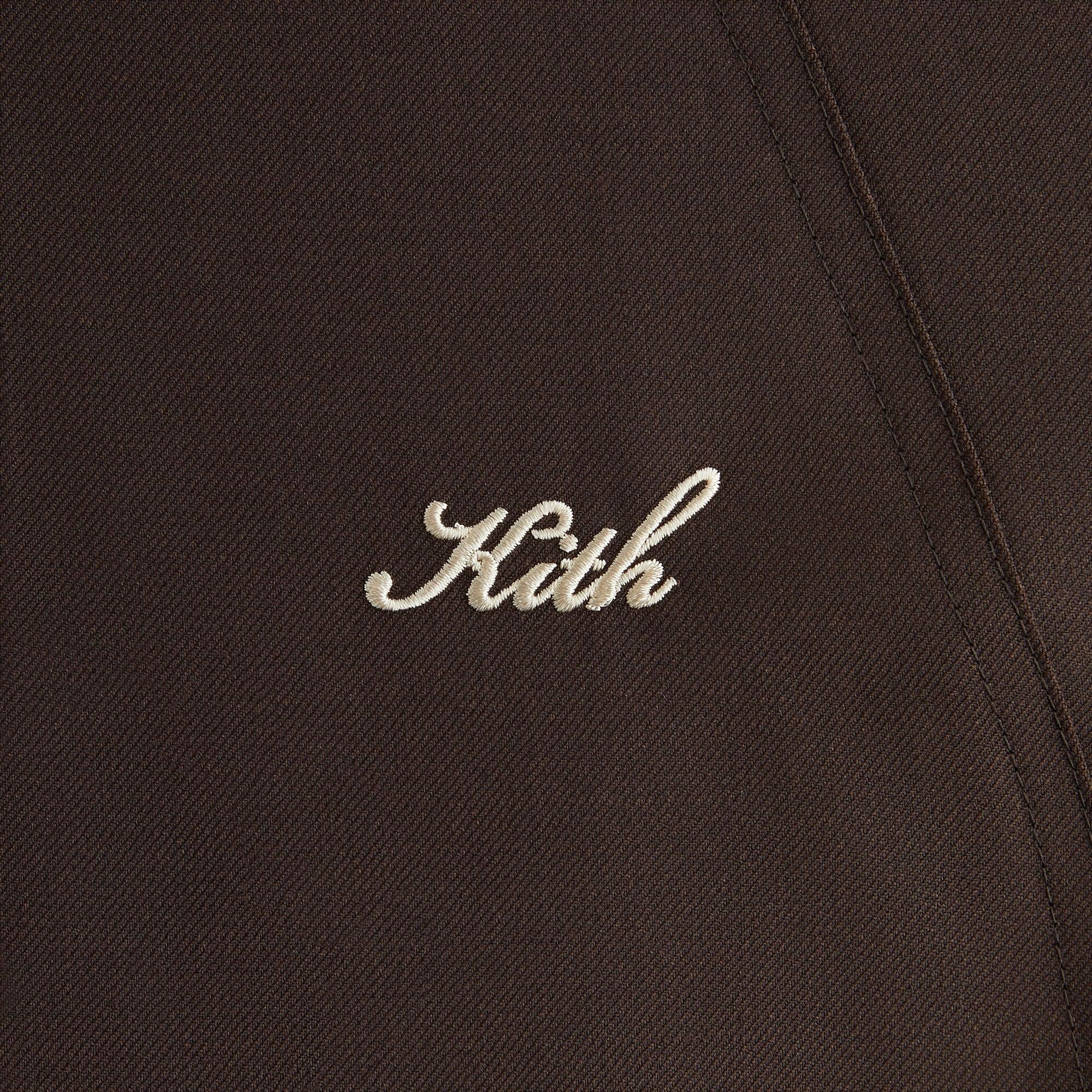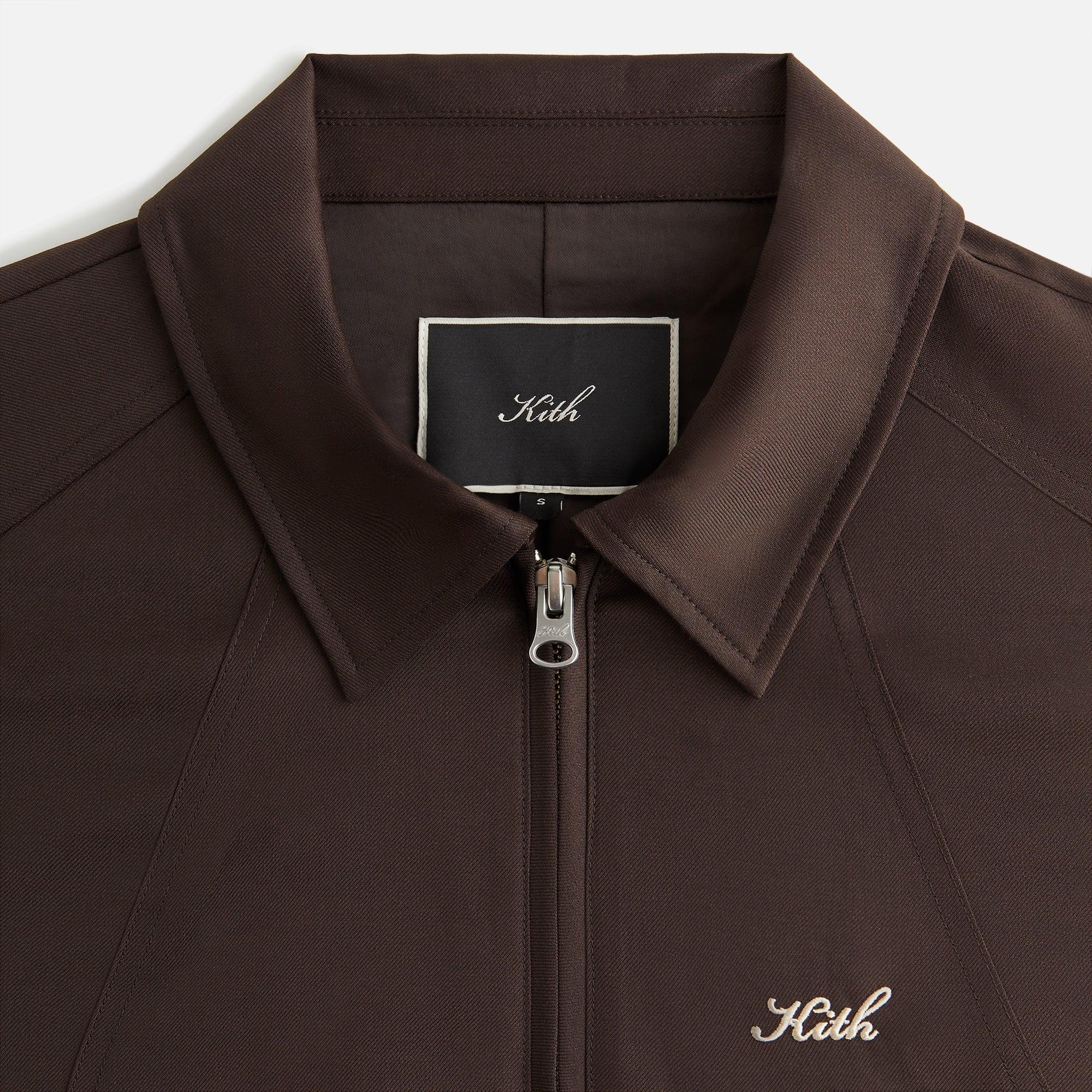 Twill tailoring fabric Satin lining Style lines throughout collar Two-way center-front zipper Kith-branded zipper pullers Welt pockets Ribbed hem and sleeve cuffs Kith embroidery on the front See garment tag for care instructions Style: khw010225-244 Color: Incognito Material: 59% Wool / 39% Polyester / 2% Elastane
