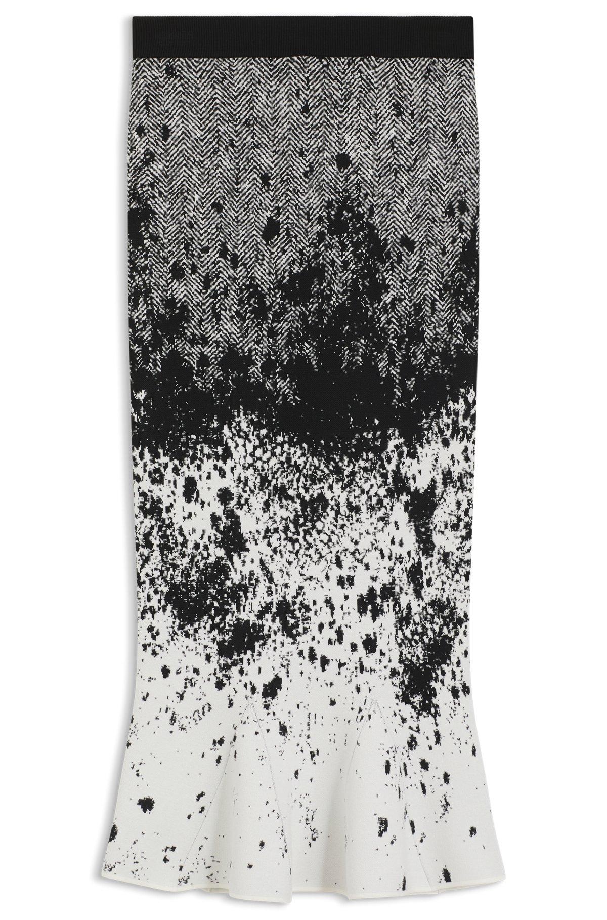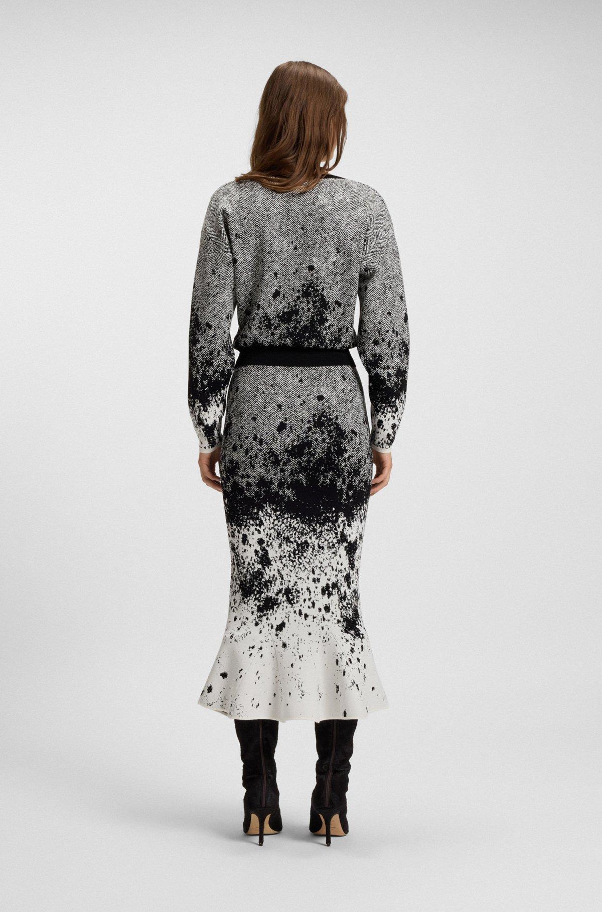 Available in plain and patterned designs, this BOSS Womenswear skirt features godet inserts to create a contemporary tulip shape. Knitted in lustrous stretch yarn.