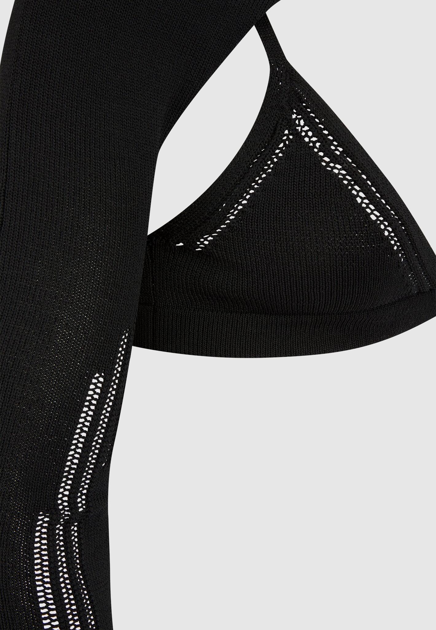 Black Knitted Sleeve Overlay with Bralette In our classic stretch yarn fabric combined with the carefully placed wide knit contrasting makes this set perfect for evenings out by seductively contouring the body. Bralette with Overlay Silhouette Stretch Yarn Fabric Crew Neckline Thumbholes in Sleeves Detached Overlay Silver Adjusters on Bralette Silver Manière De Voir Plaque Fabric: 65% Viscose, 35% Nylon Always check the care label for wash instructions. Model is 5'8", 32.5" Bust, 24" Waist, 32" High Hip, 37.5" Low Hip and Wears Size XS Based on Size XS - Front Length 16cm/6.2in, Chest 57cm/22.4in, Sleeve Length 75cm/29.5in WMN3085-01