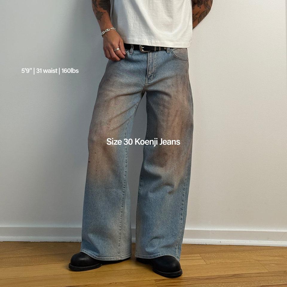 * Runs large because our Koenji Jeans have a low rise fit, designed to sit at your hips. For a straight-cut, size down one (1) size. For a wide-cut, go true to size.