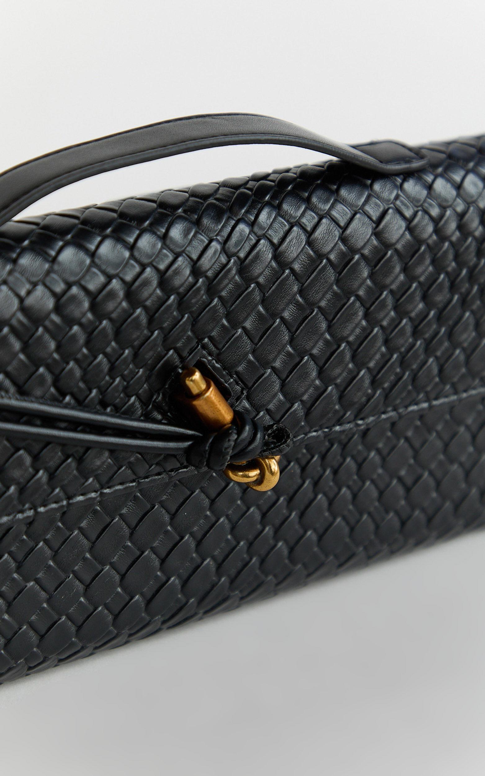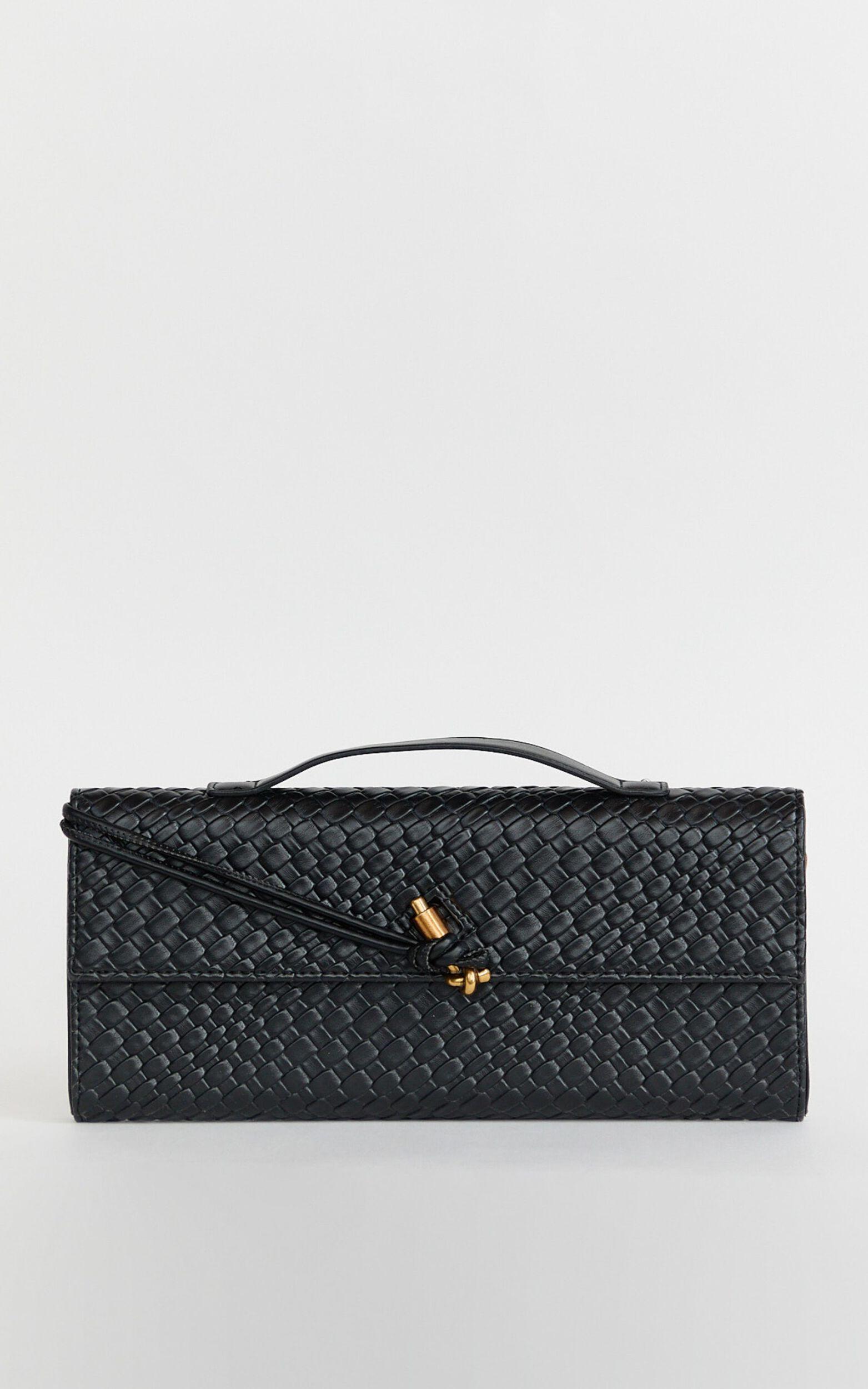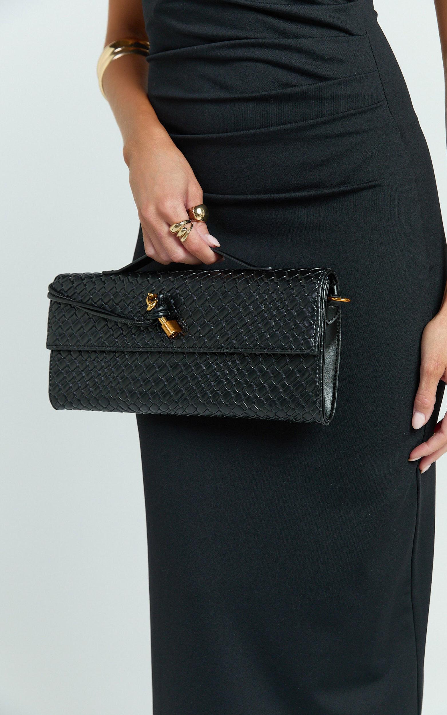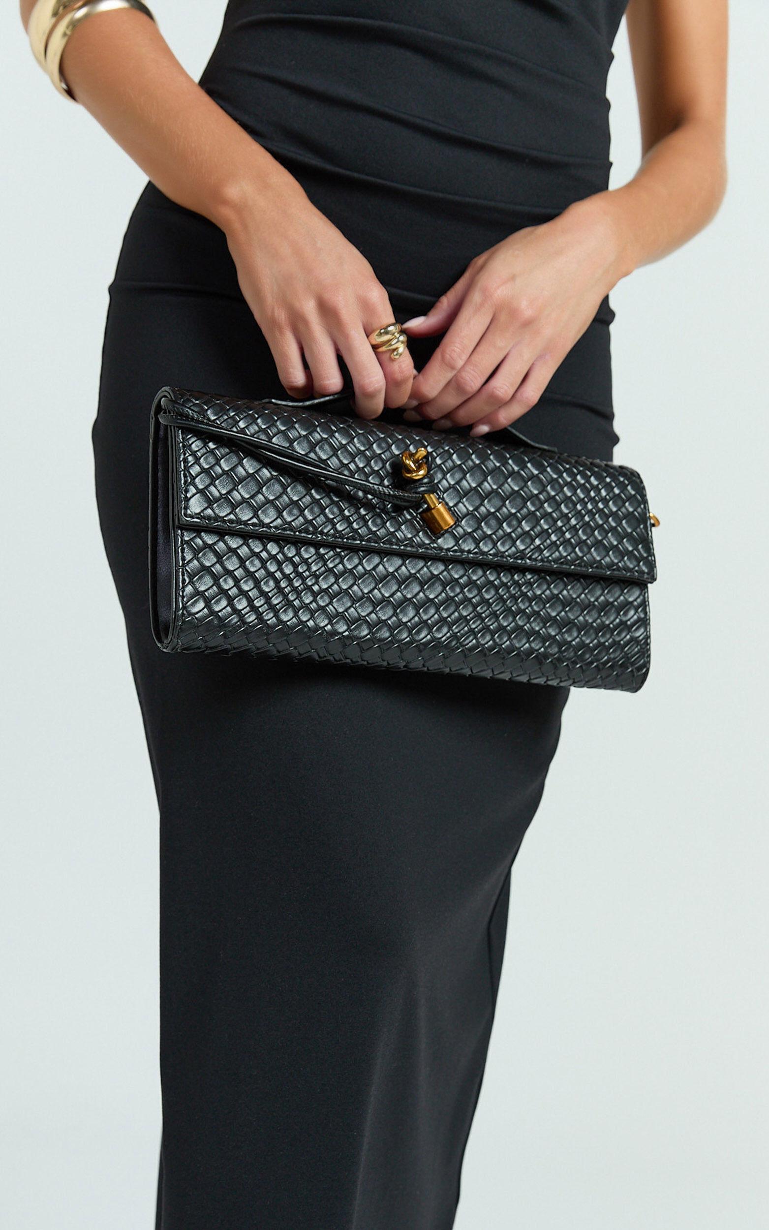 This chic black clutch features an elegant woven design that makes it the perfect accessory for any occasion, from evening cocktail parties to casual brunch dates with your girlfriends. Pair it with a flirty floral corset top and denim miniskirt for a playful weekend vibe, or style it with a bold gingham puff-sleeve dress and gladiator sandals when you're feeling extra glam.Compact yet spacious enough to hold all your essentials, the Krizza Bag is sure to become your new go-to clutch. Treat yourself to this stylish accessory and instantly add luxe texture, elevating your fashion game wherever you're headed!Product Details:Synthetic materialFormal useClutch bags