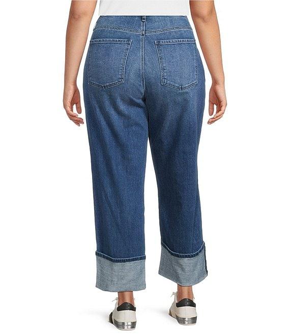 From KUT from the Kloth Plus, these jeans feature: Stretch denim fabrication Straight leg silhouette High rise Belt loops 5-pocket styling Rolled up cuffs Front zipper and button closure Approx. 32.25" unrolled, 27" rolled cuff Cotton/polyester/recycled cotton/spandex Machine wash Imported.